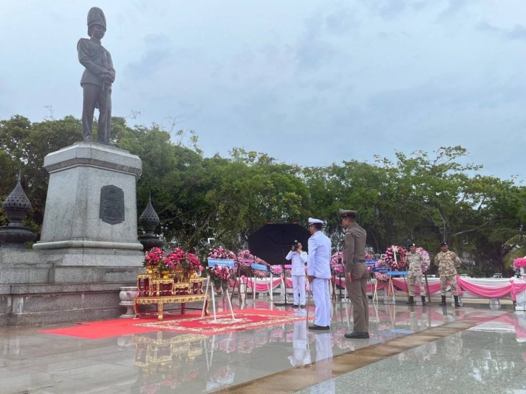 วันที่ 23 ต.ค.67 เวลา 08.00 น. ร.ต.อ.สิทธิชัย ขำสุข รอง สว.ตม.จว.สุราษฎร์ธานี พร้อมด้วยข้าราชการตำรวจในสังกัดฯ (เกาะพะงัน) เข้าร่วมพิธีวางพวงมาลาเพื่อน้อมรำลึกในวันคล้ายวันสวรรคต พระบาทสมเด็จพระจุลจอมเกล้าเจ้าอยู่หัว ณ ลานพระบรมราชานุสาวรีย์รัชกาลที่ 5 ม.1 ตำบลเกาะพะงัน อ.เกาะพะงัน โดยมี นาย นพดล ขาวมะลิ นายอำเภอเกาะพะงัน จังหวัดสุราษฎร์ธานี เป็นประธาน