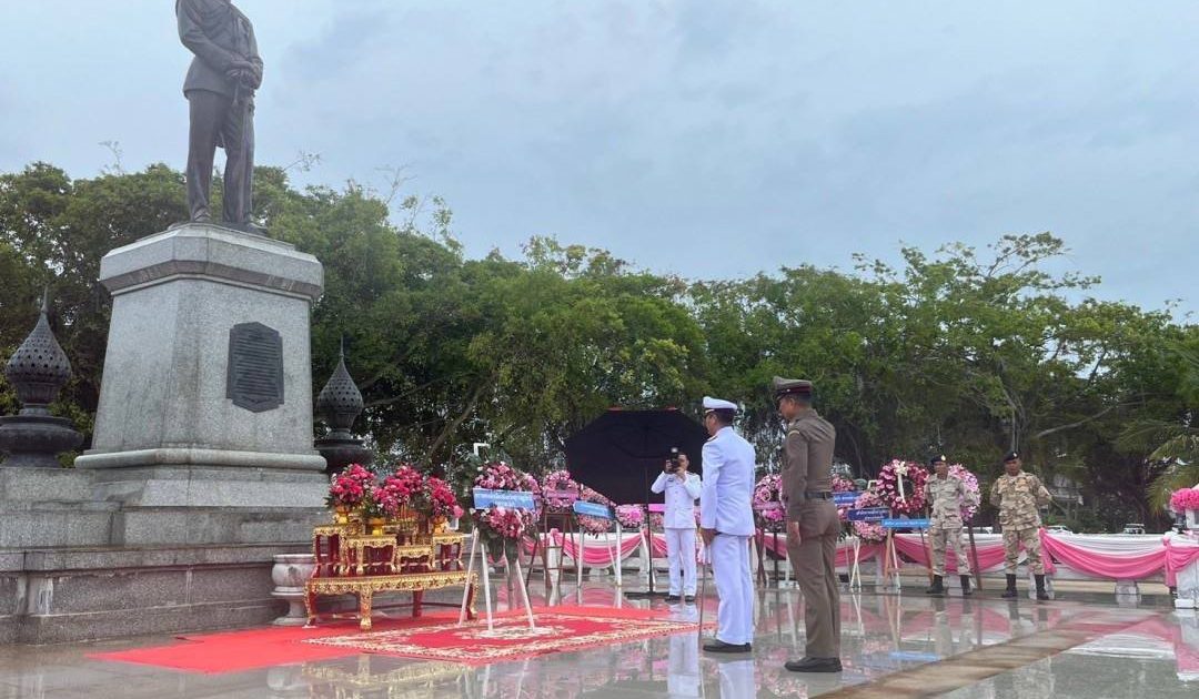 วันที่ 23 ต.ค.67 เวลา 08.00 น. ร.ต.อ.สิทธิชัย ขำสุข รอง สว.ตม.จว.สุราษฎร์ธานี พร้อมด้วยข้าราชการตำรวจในสังกัดฯ (เกาะพะงัน) เข้าร่วมพิธีวางพวงมาลาเพื่อน้อมรำลึกในวันคล้ายวันสวรรคต พระบาทสมเด็จพระจุลจอมเกล้าเจ้าอยู่หัว ณ ลานพระบรมราชานุสาวรีย์รัชกาลที่ 5 ม.1 ตำบลเกาะพะงัน อ.เกาะพะงัน โดยมี นาย นพดล ขาวมะลิ นายอำเภอเกาะพะงัน จังหวัดสุราษฎร์ธานี เป็นประธาน