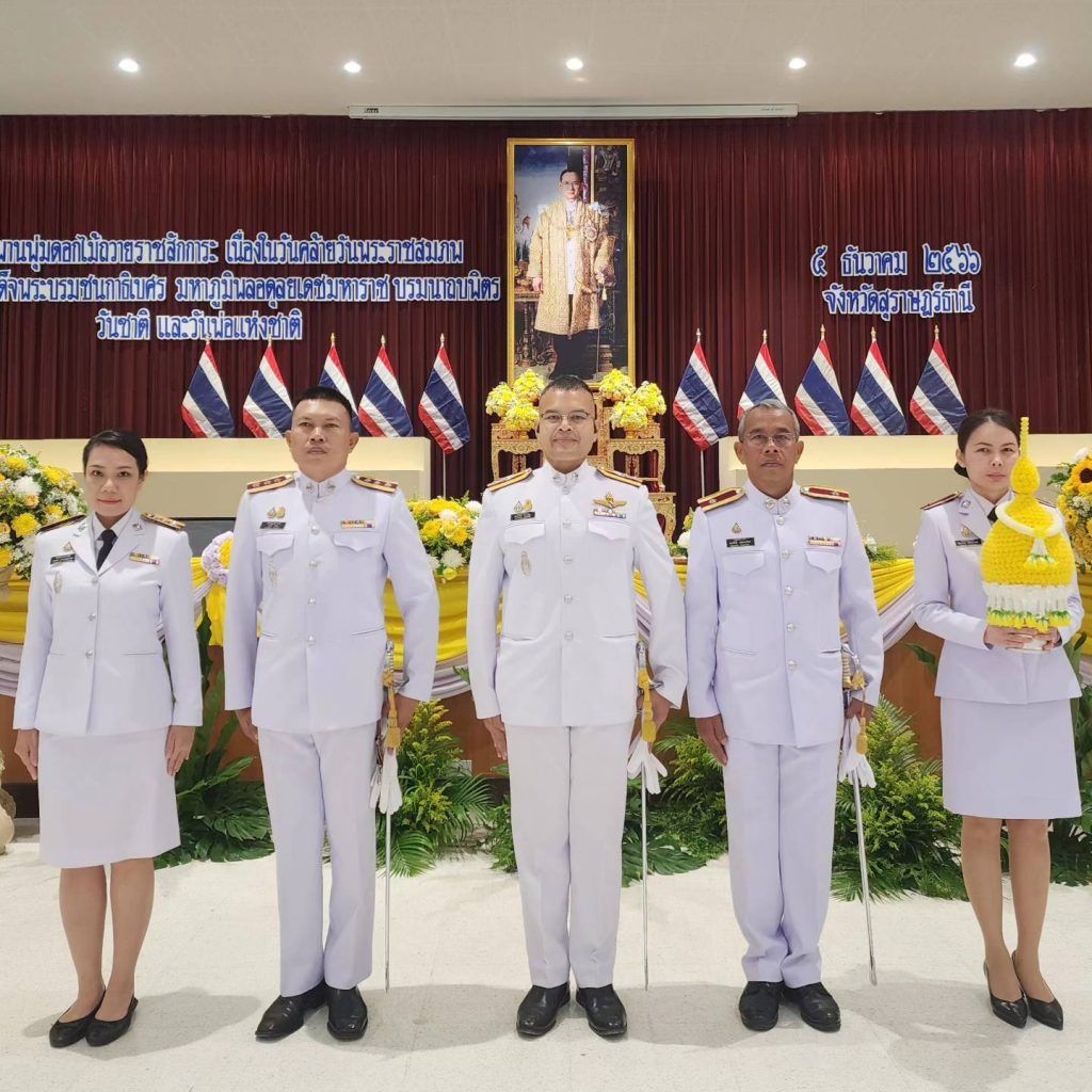 วันที่ 5 ธ.ค.66 ข้าราชการตำรวจในสังกัด ตม.จว.สุราษฎร์ธานี ร่วมกิจกรรมเนื่องในวันคล้ายวันพระบรมราชสมภพพระบาทสมเด็จพระบรมชนกาธิเบศร มหาภูมิพลอดุลยเดชมหาราช บรมนาถบพิตร วันชาติ และวันพ่อแห่งชาติ 5 ธันวาคม 2566 เพื่อน้อมรำลึกในพระมหากรุณาธิคุณ และแสดงความจงรักภักดี รวมทั้งเพื่อความเป็นสิริมงคลต่อตนเองและครอบครัว