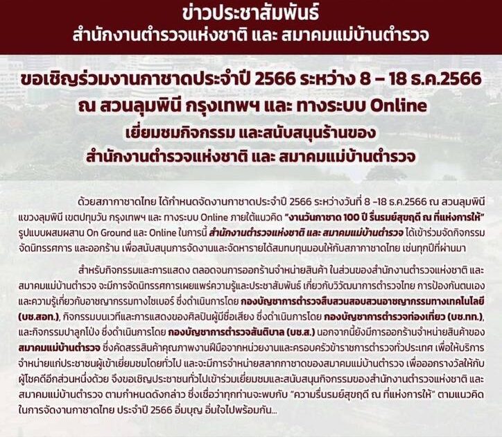 เชิญร่วมงานกาชาดประจำปี 2566 ระหว่าง 8 – 18 ธ.ค.66