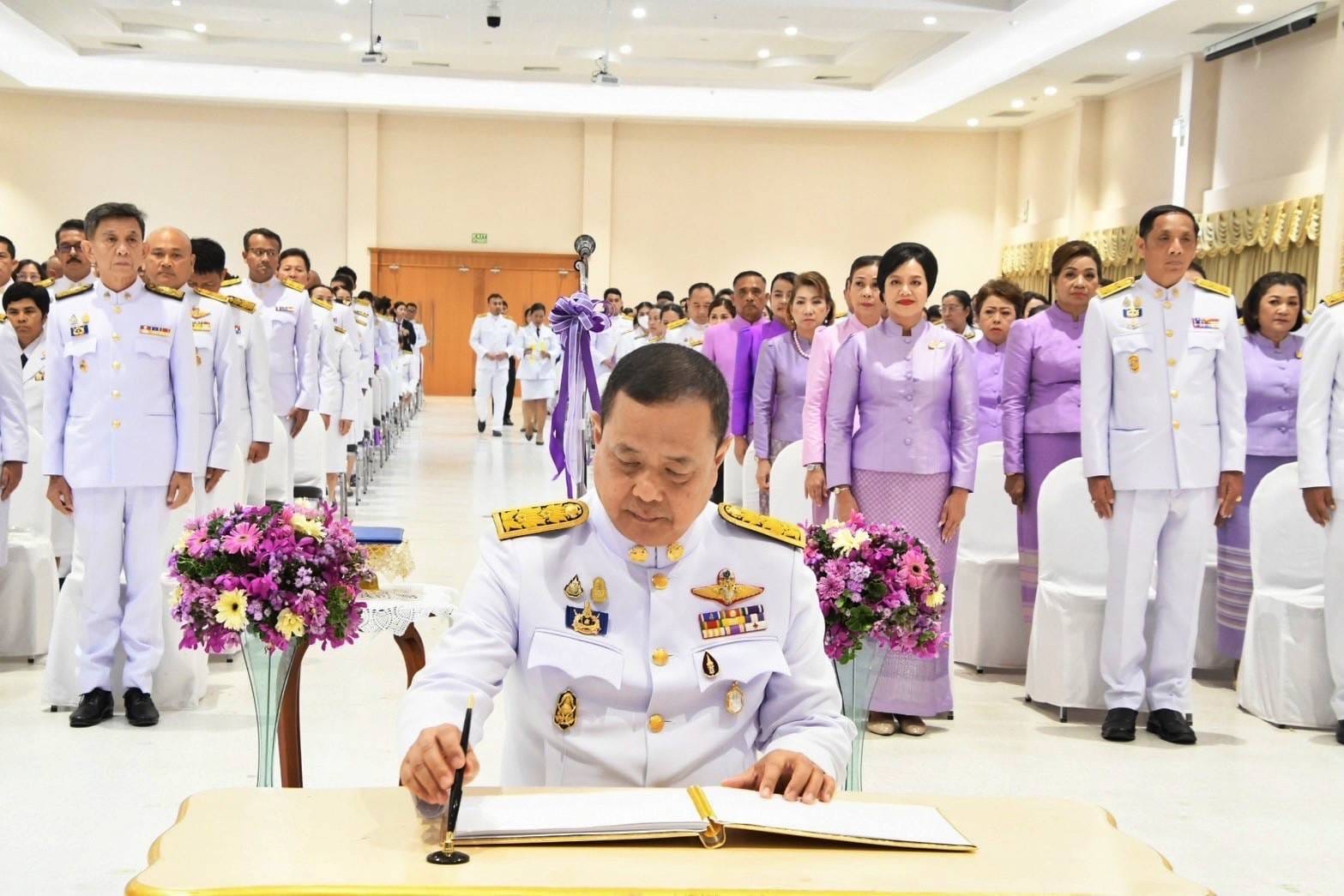 วันที่ 3 มิ.ย.67 เวลา 17.00 น. ว่าที่ พ.ต.อ.นฤวัต พุทธวิโร ผกก.ตม.จว.สุราษฎร์ธานี มอบหมายให้ พ.ต.ท.พิงคะรัตน์ ซ้ายขวัญ รอง ผกก.ตม.จว.สุราษฎร์ธานี พร้อมด้วย ร.ต.อ.หญิง อลิตสรา วงษ์แก้ว รอง สว.ตม.จว.สุราษฎร์ธานี , ร.ต.อ.ดอน เหี้ยมหาญ รอง สว.ตม.จว.สุราษฎร์ธานี และ ด.ต.ธเนศพล สำลี ผบ.หมู่ ตม.จว.สุราษฎร์ธานี เข้าร่วมพิธีถวายเครื่องราชสักการะและวางพานพุ่ม และพิธีจุดเทียนถวายพระพรชัยมงคล เนื่องในโอกาสวันเฉลิมพระชนมพรรษา สมเด็จพระนางเจ้าฯ พระบรมราชินี (3 มิ.ย.67) ณ อาคารศูนย์กลางการประชุมสัมนาภาคใต้ตอนบนศาลากลางจังหวัดสุราษฎร์ธานี อ.เมืองสุราษฎร์ธานี จว.สุราษฎร์ธานี โดยมี นายเจษฎา จิตรัตน์ ผู้ว่าราชการจังหวัดสุราษฎร์ธานี เป็นประธาน