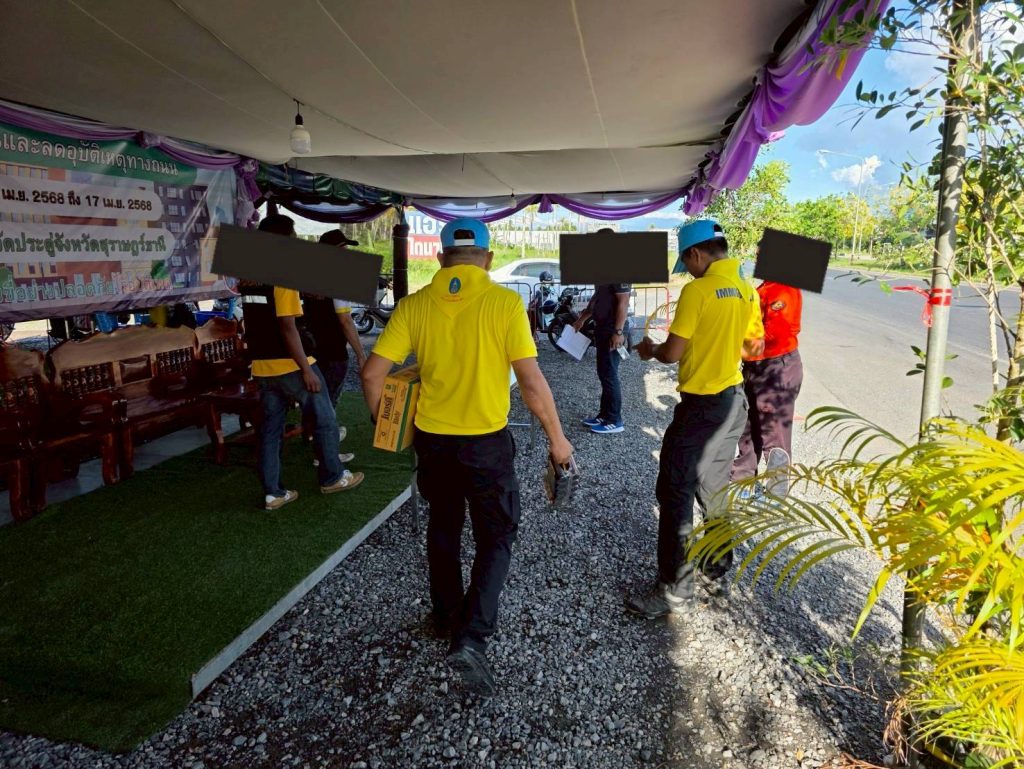 วันที่ 13 เม.ย.2568 เวลา 13.30 น. ร.ต.อ.ยศวีร์ รักธง รอง สว.ตม.จว.สุราษฎร์ธานี พร้อม จนท.ประจำชุด ออกตรวจพื้นที่ ดูแลความปลอดภัยและอำนวยความสะดวกแก่ประชาชนและนักท่องเที่ยวในช่วงเทศกาลสงกรานต์ 2568 ณ จุดบริการหน้าสำนักงานเทศบาลวัดประดู่ ม.1 ต.วัดประดู่ อ.เมืองสุราษฎร์ธานี จว.สุราษฎร์ธานี พร้อมมอบน้ำดื่มและเครื่องดื่มบำรุงกำลังให้แก่เจ้าหน้าที่ประจำจุดตรวจ เหตุการณ์ทั่วไปปกติ