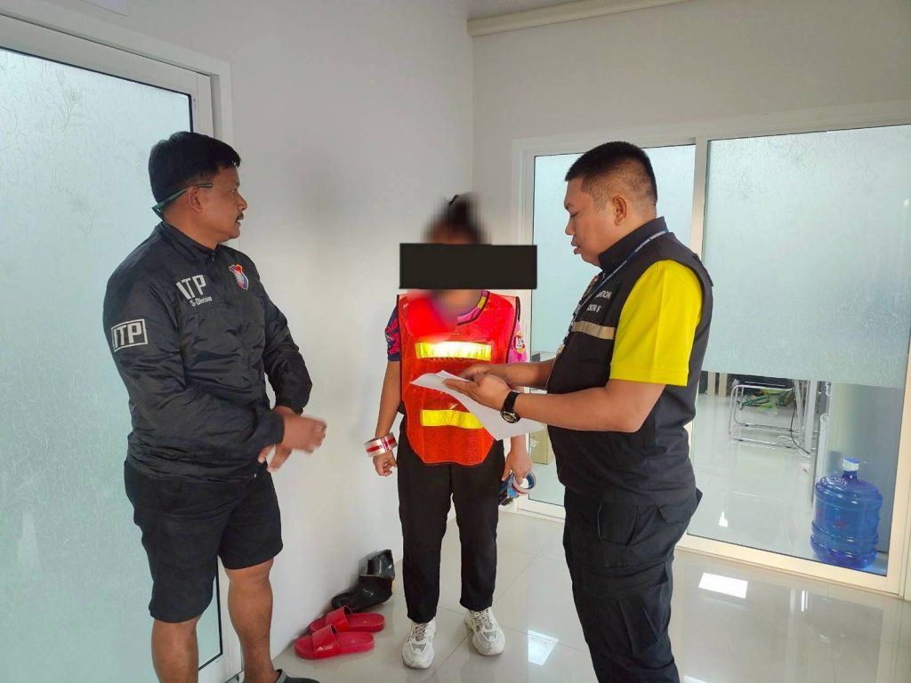 วันที่ 25 ธ.ค.2567 เวลา 17.30 น. พ.ต.ท.หญิง ชไนยพร ฉัตรภูมิ สว.ตม.จว.สุราษฎร์ธานี,ร.ต.อ.ยศวีร์ รักธง รอง สว.ตม.จว.สุราษฎร์ธานี พร้อม จนท.ชุดสืบสวน ชป.1 ตม.จว.สุราษฎร์ธานี สนธิกำลังร่วม จนท.ตร.บก.สอท.5, จนท.ตร.กก.สืบสวน บช.ทท.และ จนท.ตร.กก.2 บก.ทท.3 จับกุมตัวบุคคลสัญชาติไทย