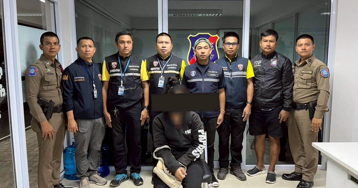 วันที่ 25 ธ.ค.2567 เวลา 17.30 น. พ.ต.ท.หญิง ชไนยพร ฉัตรภูมิ สว.ตม.จว.สุราษฎร์ธานี,ร.ต.อ.ยศวีร์ รักธง รอง สว.ตม.จว.สุราษฎร์ธานี พร้อม จนท.ชุดสืบสวน ชป.1 ตม.จว.สุราษฎร์ธานี สนธิกำลังร่วม จนท.ตร.บก.สอท.5, จนท.ตร.กก.สืบสวน บช.ทท.และ จนท.ตร.กก.2 บก.ทท.3 จับกุมตัวบุคคลสัญชาติไทย