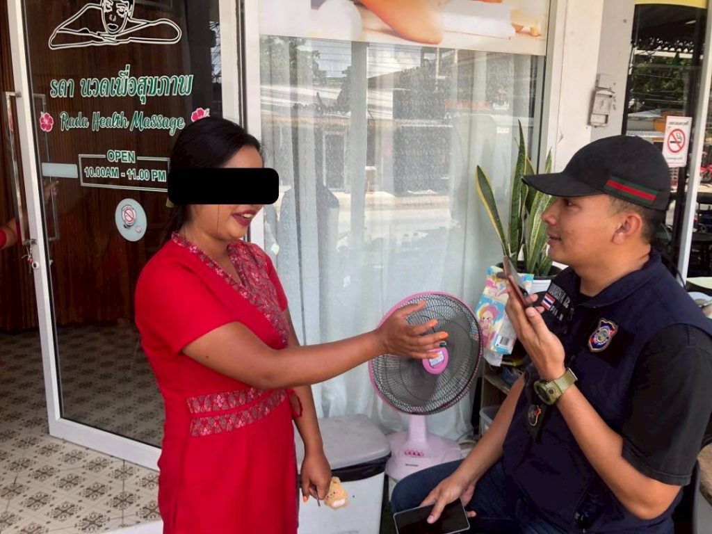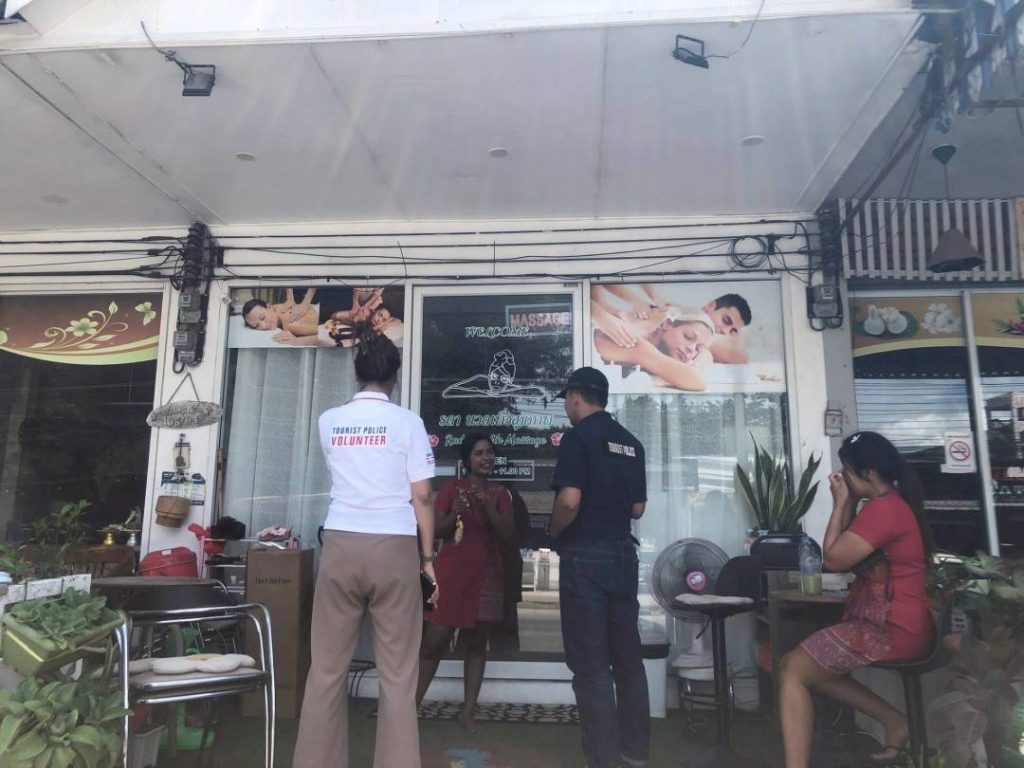 สถานที่จับกุม หน้าร้าน รดา นวดเพื่อสุขภาพ ม.1 ต.บ่อผุด อ.เกาะสมุย จว.สุราษฎร์ธานี