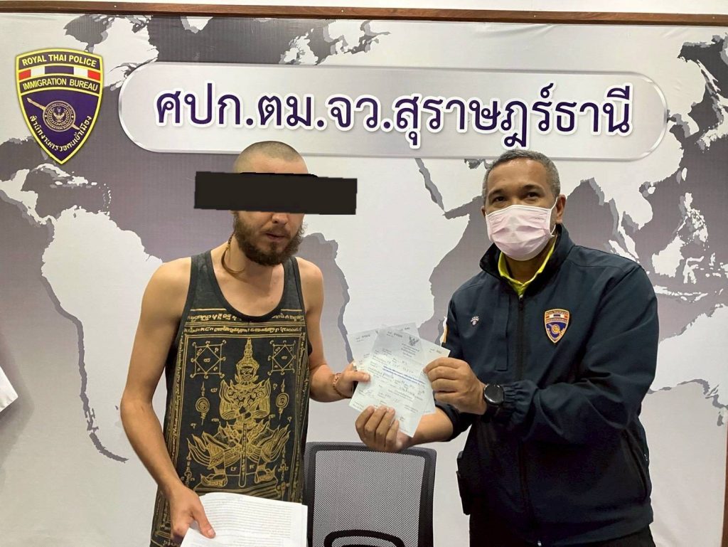 วันที่ 22 เม.ย.2568 เวลา 17.50 น. พ.ต.ท.หญิงสงวนทรัพย์ ลาภสนอง สว.ตม.จว.สุราษฎร์ธานี ร.ต.อ.สิริวัฒน์ สมหวัง รอง สว.ตม.จว.สุราษฎร์ธานี พร้อมเจ้าหน้าที่ชุดสืบสวนฯ ชป.4 (เกาะพะงัน)ได้จับกุม สัญชาติรัสเซีย