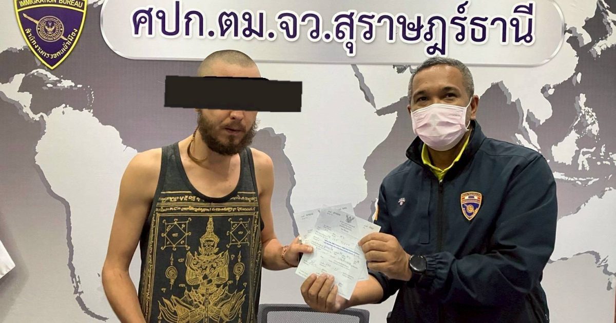 วันที่ 22 เม.ย.2568 เวลา 17.50 น. พ.ต.ท.หญิงสงวนทรัพย์ ลาภสนอง สว.ตม.จว.สุราษฎร์ธานี ร.ต.อ.สิริวัฒน์ สมหวัง รอง สว.ตม.จว.สุราษฎร์ธานี พร้อมเจ้าหน้าที่ชุดสืบสวนฯ ชป.4 (เกาะพะงัน)ได้จับกุม สัญชาติรัสเซีย