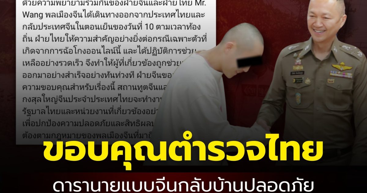 ดาราและนายแบบจีนขอบคุณตำรวจไทยช่วยเหลือกลับประเทศโดยปลอดภัย