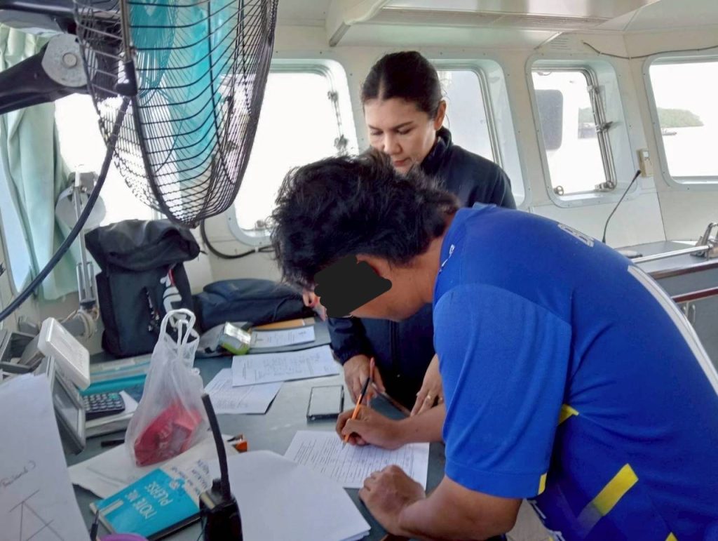 วันที่ 5 พ.ค.68 ร.ต.อ.หญิง ธมนวรรณ มณี รอง สว.ตม.จว.สุราษฎร์ธานี , ร.ต.ท.ผดุงศักดิ์ แยบกระโทก รอง สว.(อก.) ตม.จว.สุราษฎร์ธานี ,ด.ต.หญิง พิมประภา จันทร์ขาว ผบ.หมู่ ตม.จว.สุราษฎร์ธานี ปฏิบัติหน้าที่ตรวจบุคคลและพาหนะทางน้ำ ในเขตพื้นที่รับผิดชอบ ประจำท่าเรืออ่าวบ้านดอน อ.เมือง จว.สุราษฎร์ธานี