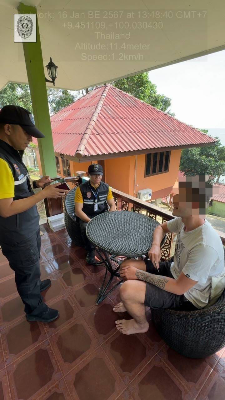 วันที่ 16 ม.ค.67 เวลา 13.50 น. ร.ต.อ.อรุณ มูสิกิ้ม รอง สว.ตม.จว.สุราษฎร์ธานี และ ร.ต.ท.ธรรมนูญ แพน้อย รอง สว.(ป.ป.) ตม.จว.สุราษฎร์ธานี พร้อมเจ้าหน้าที่ชุดสืบสวน ชป.3 ได้นำรถยนต์ไฟฟ้าตรวจการณ์อัจฉริยะ (Smart Patrol Car : SPC) ออกสืบสวนหาข่าวในพื้นที่รับผิดชอบ และได้สุ่มตรวจบุคคลสัญชาติฝรั่งเศส บริเวณพื้นที่ ม.1 ต.มะเร็ต อ.เกาะสมุย จว.สุราษฎร์ธานี