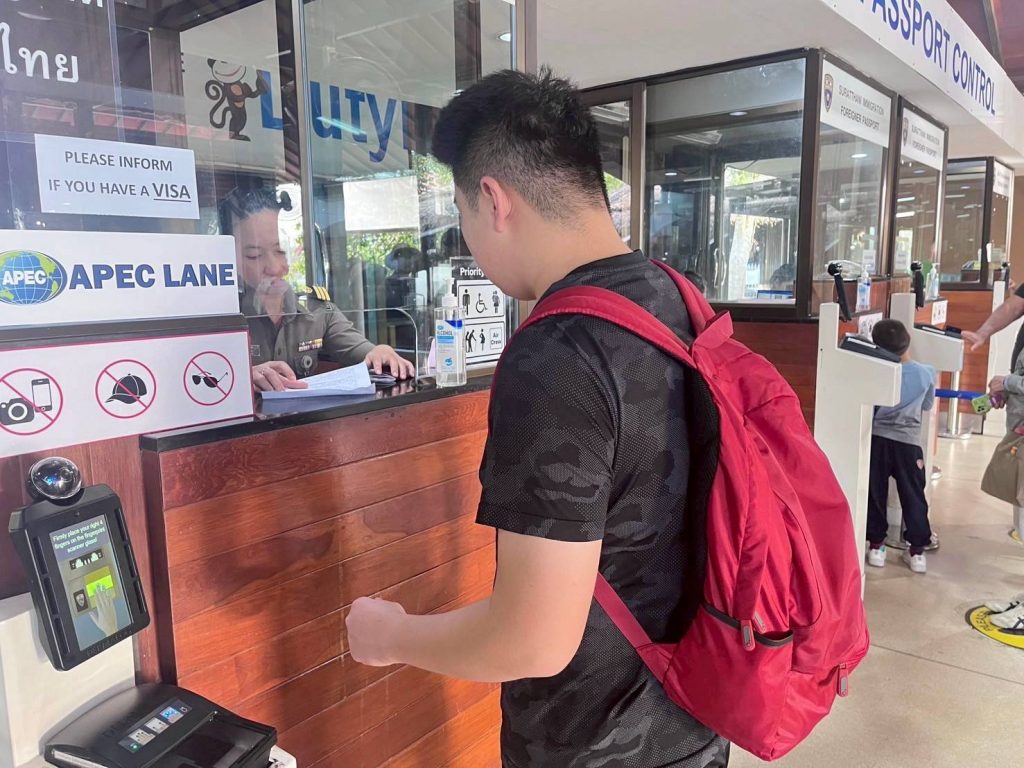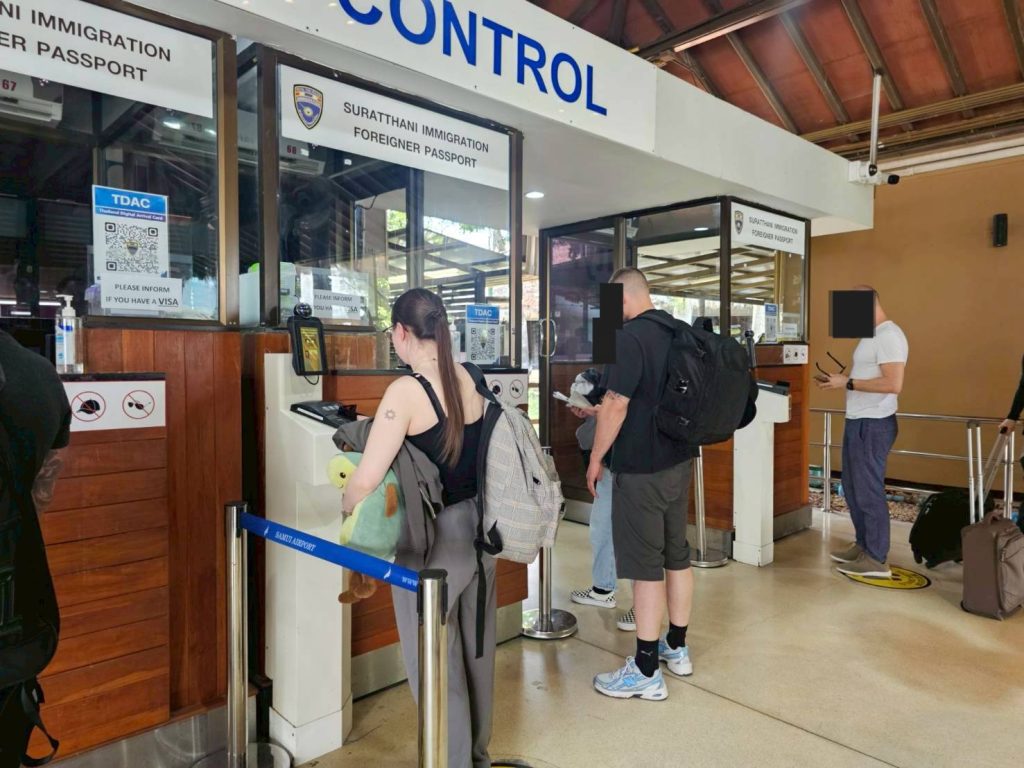 วันที่ 2 พ.ค.68 ร.ต.อ.หญิง ภาวดี หวานทอง ,ร.ต.อ.ธฤติพัฒน์ สมมะลวน,ร.ต.อ.หญิง จันทร์จิรา วิถี รอง สว.ตม.จว.สุราษฎร์ธานี พร้อมด้วยเจ้าหน้าที่ ตม.จว.สุราษฎร์ธานี (ทอ.สมุย) ปฏิบัติหน้าที่ตรวจบุุคคลและพาหนะทางอากาศ, Overstay, Visa on arrival พร้อมดูแล ช่วยเหลือ อำนวยความสะดวกและความเรียบร้อยในแถวระหว่างรอเข้าใช้บริการให้กับผู้โดยสารที่เดินทางเข้า-ออก ทางอากาศในเขตพื้นที่รับผิดชอบประจำสนามบินสมุย อ.เกาะสมุย จว.สุราษฎร์ธานี