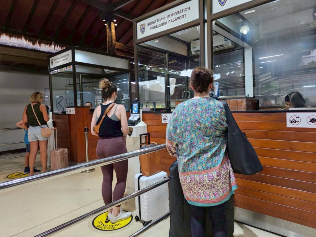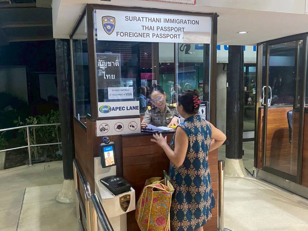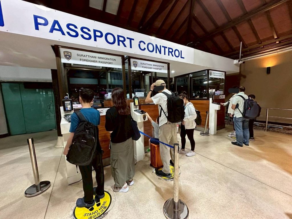 วันที่ 3 พ.ค.68 ร.ต.อ.หญิง ภาวดี หวานทอง , ร.ต.อ.ธฤติพัฒน์ สมมะลวน,ร.ต.อ.หญิง จันทร์จิรา วิถี รอง สว.ตม. จว.สุราษฎร์ธานี พร้อมด้วยเจ้าหน้าที่ ตม.จว. สุราษฎร์ธานี (ทอ.สมุย) ปฏิบัติหน้าที่ตรวจบุุคคลและพาหนะทางอากาศ, Overstay, Visa on arrival พร้อมดูแล ช่วยเหลือ อำนวยความสะดวกและความเรียบร้อยในแถวระหว่างรอเข้าใช้บริการให้กับผู้โดยสารที่เดินทางเข้า-ออก ทางอากาศในเขตพื้นที่รับผิดชอบประจำสนามบินสมุย อ.เกาะสมุย จว.สุราษฎร์ธานี