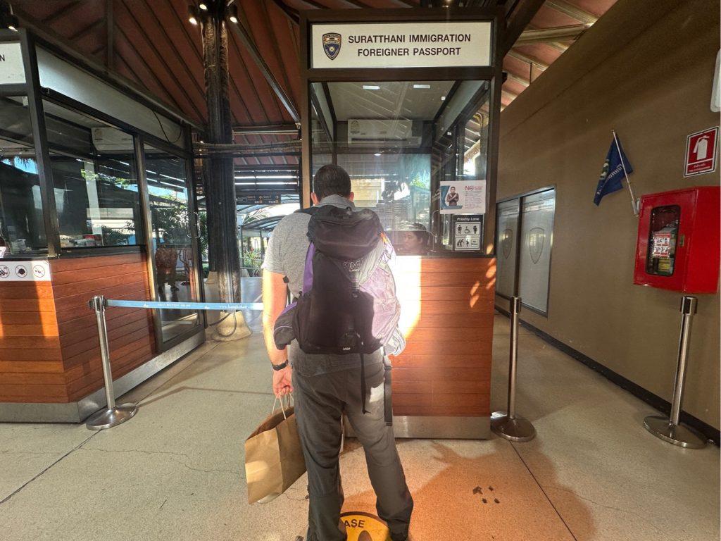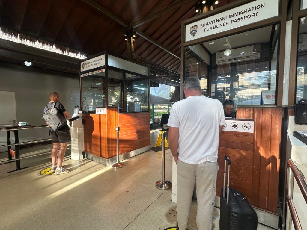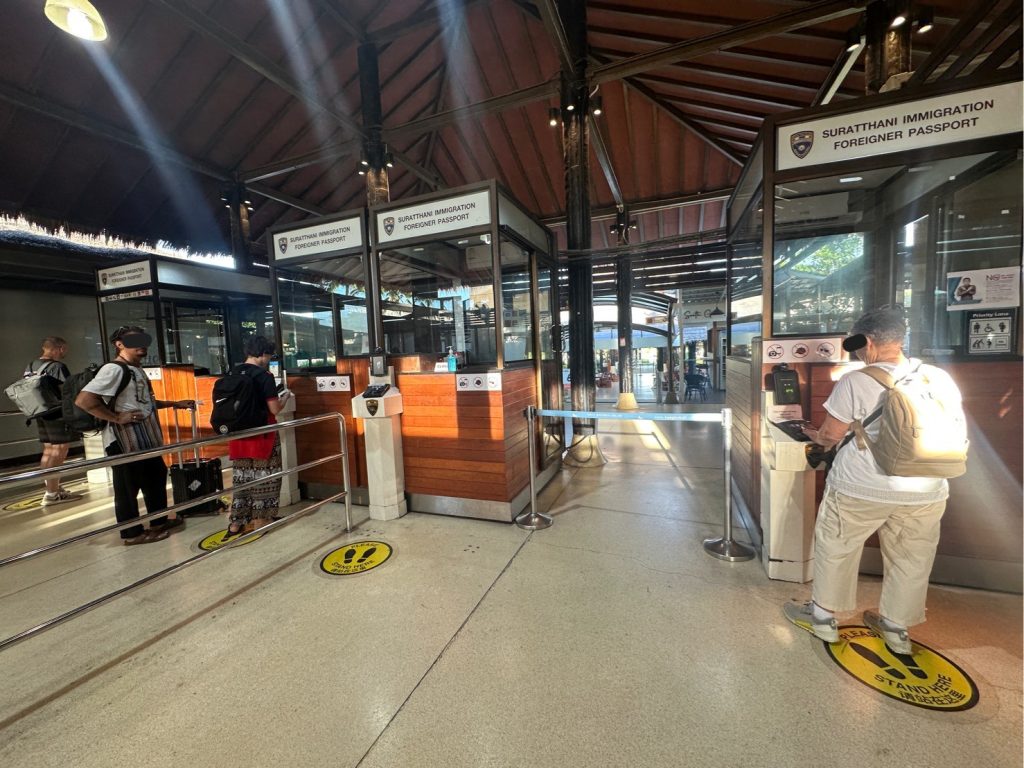 วันที่ 7 พ.ค. 2568 เวลา 06.00 น. ภายใต้การอำนวยการและสั่งการของ พล.ต.ต.ทรงโปรด สิริสุขะ ผบก.ตม.6, พ.ต.อ.นฤวัต พุทธวิโร ผกก.ตม.จว.สุราษฎร์ธานี, พ.ต.ท.สภา จิตต์หลัง รอง ผกก.ฯ ปฏิบัติราชการ ตม.จว.สุราษฎร์ธานี, ว่าที่ พ.ต.ท.หญิง ปาณิศา มุขรัษฎา สว.ตม.จว.สุราษฎร์ธานี นำโดย ร.ต.อ.ธฤติพัฒน์ สมมะลวน รอง สว.ตม.จว.สุราษฎร์ธานี พร้อมด้วยเจ้าหน้าที่ ตม.จว.สุราษฎร์ธานี (ทอ.สมุย) ปฏิบัติหน้าที่ตรวจบุคคลและพาหนะทางอากาศให้กับผู้โดยสารที่เดินทางออก เที่ยวบิน TR641 ในเขตพื้นที่รับผิดชอบประจำสนามบินสมุย
