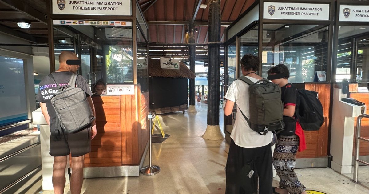 วันที่ 7 พ.ค. 2568 เวลา 06.00 น. ภายใต้การอำนวยการและสั่งการของ พล.ต.ต.ทรงโปรด สิริสุขะ ผบก.ตม.6, พ.ต.อ.นฤวัต พุทธวิโร ผกก.ตม.จว.สุราษฎร์ธานี, พ.ต.ท.สภา จิตต์หลัง รอง ผกก.ฯ ปฏิบัติราชการ ตม.จว.สุราษฎร์ธานี, ว่าที่ พ.ต.ท.หญิง ปาณิศา มุขรัษฎา สว.ตม.จว.สุราษฎร์ธานี นำโดย ร.ต.อ.ธฤติพัฒน์ สมมะลวน รอง สว.ตม.จว.สุราษฎร์ธานี พร้อมด้วยเจ้าหน้าที่ ตม.จว.สุราษฎร์ธานี (ทอ.สมุย) ปฏิบัติหน้าที่ตรวจบุคคลและพาหนะทางอากาศให้กับผู้โดยสารที่เดินทางออก เที่ยวบิน TR641 ในเขตพื้นที่รับผิดชอบประจำสนามบินสมุย