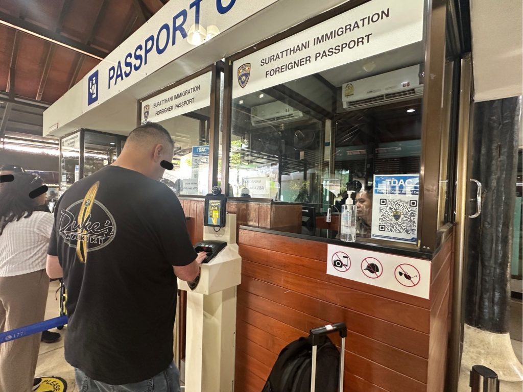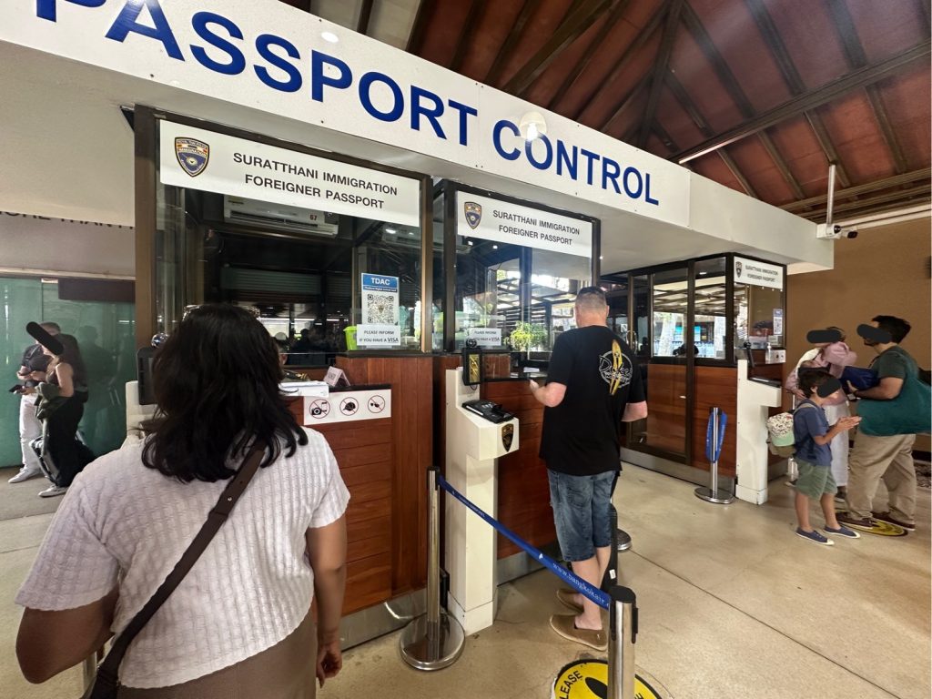 ตม.จว.สุราษฎร์ธานี (ทอ.สมุย) ปฏิบัติหน้าที่ตรวจบุคคลและพาหนะทางอากาศ