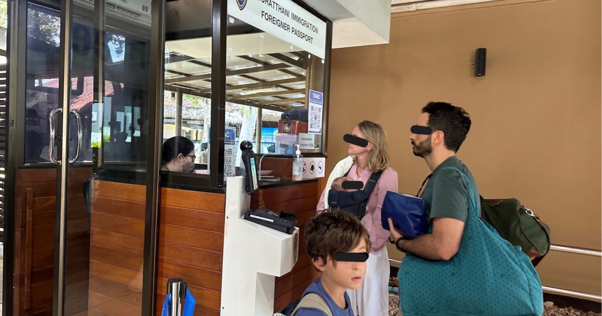 วันที่ 8 พ.ค. 2568 เวลา 07.30 น. ภายใต้การอำนวยการและสั่งการของ พล.ต.ต.ทรงโปรด สิริสุขะ ผบก.ตม.6, พ.ต.อ.นฤวัต พุทธวิโร ผกก.ตม.จว.สุราษฎร์ธานี, พ.ต.ท.สภา จิตต์หลัง รอง ผกก.ฯ ปฏิบัติราชการ ตม.จว.สุราษฎร์ธานี, ว่าที่ พ.ต.ท.หญิง ปาณิศา มุขรัษฎา สว.ตม.จว.สุราษฎร์ธานี นำโดย ร.ต.อ.ธฤติพัฒน์ สมมะลวน รอง สว.ตม.จว.สุราษฎร์ธานี พร้อมด้วยเจ้าหน้าที่ ตม.จว.สุราษฎร์ธานี (ทอ.สมุย) ปฏิบัติหน้าที่ตรวจบุคคลและพาหนะทางอากาศให้กับผู้โดยสารที่เดินทางเข้า เที่ยวบิน TR640 ในเขตพื้นที่รับผิดชอบประจำสนามบินสมุย