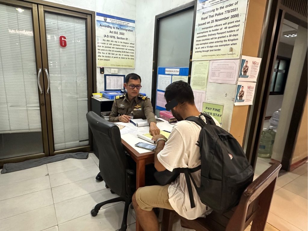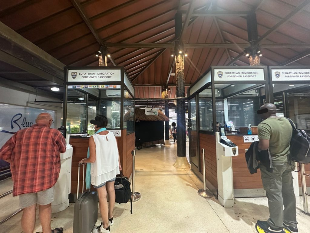 วันที่ 11 พ.ค.68 ร.ต.อ.ธฤติพัฒน์ สมมะลวน รอง สว.ตม.จว.สุราษฎร์ธานี ,ร.ต.อ.หญิง ภาวดี หวานทอง ,ร.ต.อ.หญิง จันทร์จิรา วิถี พร้อมด้วยเจ้าหน้าที่ ตม.จว.สุราษฎร์ธานี (ทอ.สมุย) ปฏิบัติหน้าที่ตรวจบุคคลและพาหนะทางอากาศ, Overstay, Visa on arrival พร้อมดูแล ช่วยเหลือ อำนวยความสะดวกและความเรียบร้อยในแถวระหว่างรอเข้าใช้บริการให้กับผู้โดยสารที่เดินทางเข้า-ออก ทางอากาศในเขตพื้นที่รับผิดชอบประจำสนามบินสมุย อ.เกาะสมุย จว.สุราษฎร์ธานี