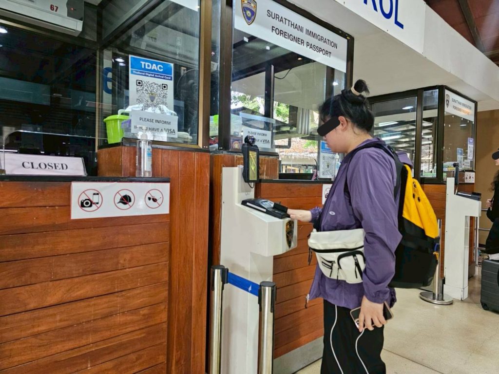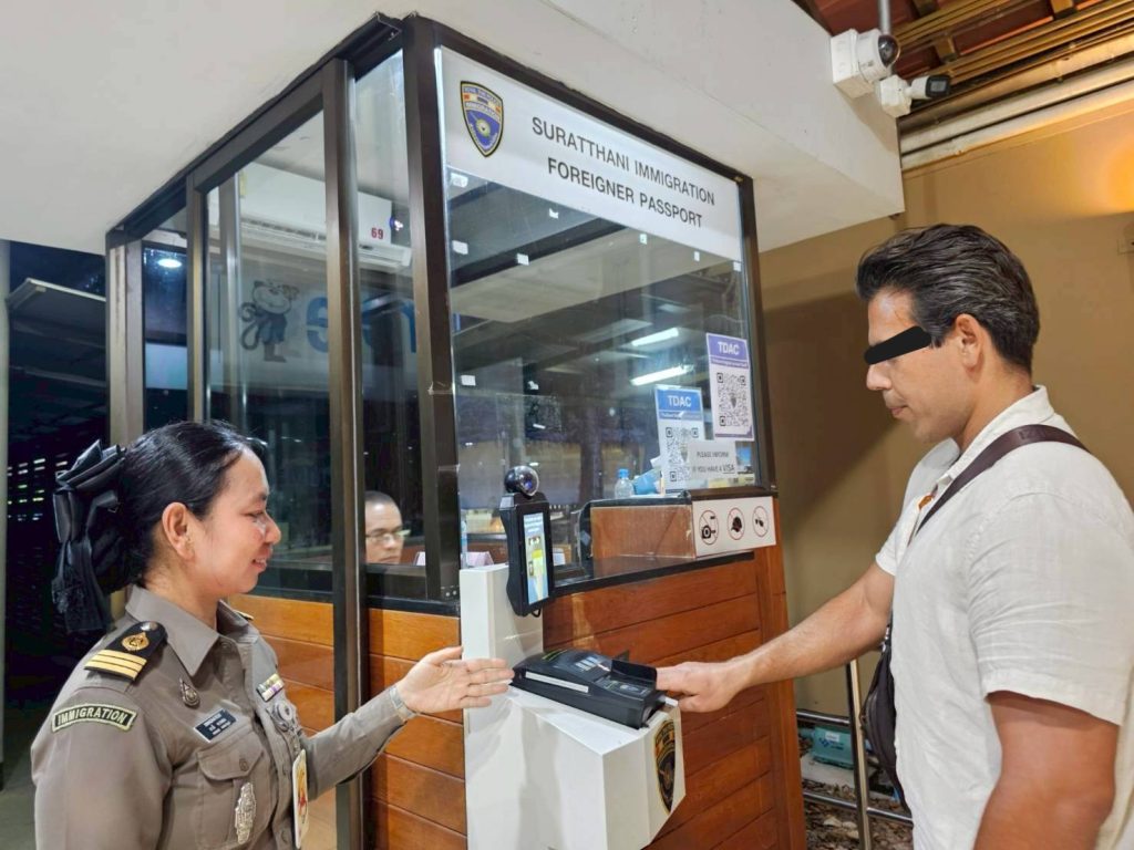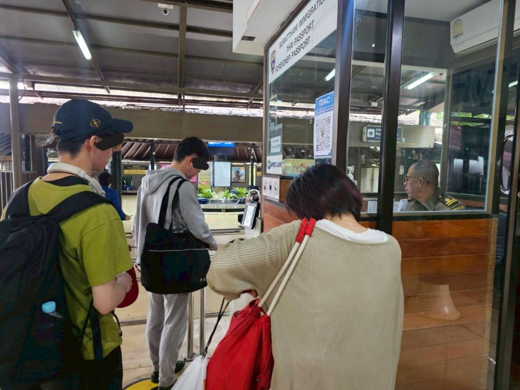 วันที่ 16 พ.ค.2568 เวลา 18.35 น. ภายใต้การอำนวยการและสั่งการของ พล.ต.ต.ทรงโปรด สิริสุขะ ผบก.ตม.6, พ.ต.อ.นฤวัต พุทธวิโร ผกก.ตม.จว.สุราษฎร์ธานี, พ.ต.ท.สภา จิตต์หลัง รอง ผกก.ฯ ปรก.ตม.จว.สุราษฎร์ธานี, ว่าที่ พ.ต.ท.หญิง ปาณิศา มุขรัษฎา สว.ตม.จว.สุราษฎร์ธานี นำโดย ร.ต.อ.หญิง ภาวดี หวานทอง รอง สว.ตม.จว.สุราษฎร์ธานี พร้อมด้วยเจ้าหน้าที่ ตม.จว.สุราษฎร์ธานี (ทอ.สมุย) ปฏิบัติหน้าที่ตรวจบุคคลและพาหนะทางอากาศให้กับผู้โดยสารที่เดินทางเข้า เที่ยวบิน PG806 ในเขตพื้นที่รับผิดชอบประจำสนามบินสมุย