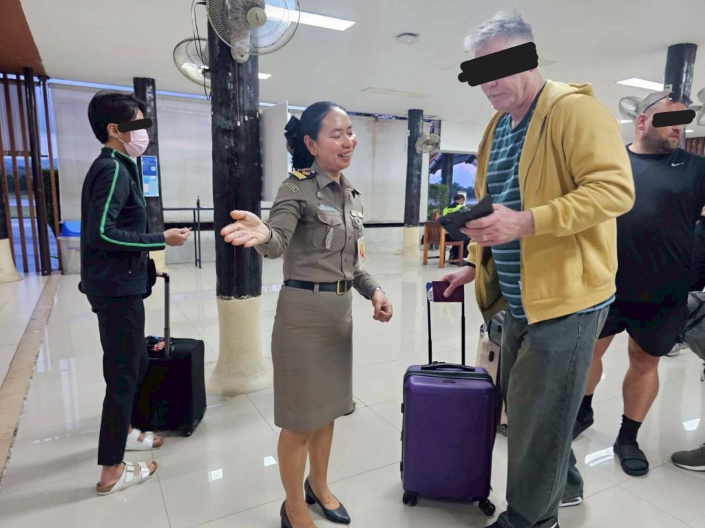 วันที่ 19 พ.ค.68 ร.ต.อ.หญิง ภาวดี หวานทอง ,ร.ต.อ.ธฤติพัฒน์ สมมะลวน, ร.ต.อ.หญิง จันทร์จิรา วิถี รอง สว.ตม.จว.สุราษฎร์ธานี พร้อมด้วยเจ้าหน้าที่ ตม.จว.สุราษฎร์ธานี (ทอ.สมุย) ปฏิบัติหน้าที่ตรวจบุคคลและพาหนะทางอากาศ, Overstay, Visa on arrival พร้อมดูแล ช่วยเหลือ อำนวยความสะดวกและความเรียบร้อยในแถวระหว่างรอเข้าใช้บริการให้กับผู้โดยสารที่เดินทางเข้า-ออก ทางอากาศในเขตพื้นที่รับผิดชอบประจำสนามบินสมุย อ.เกาะสมุย จว.สุราษฎร์ธานี