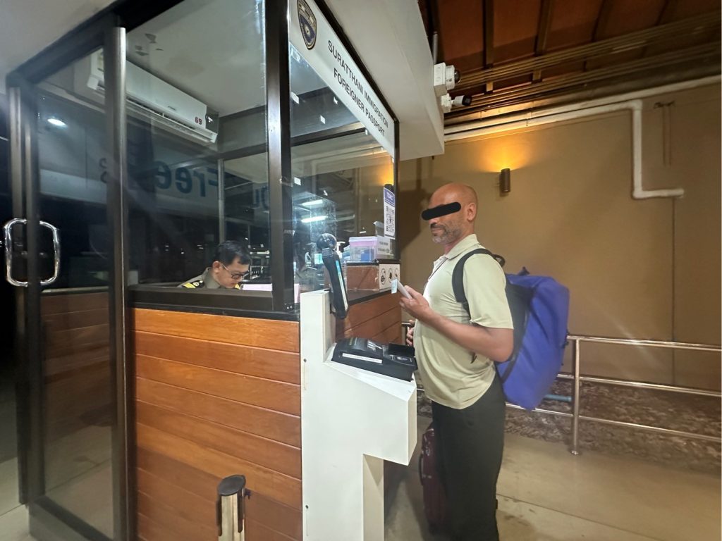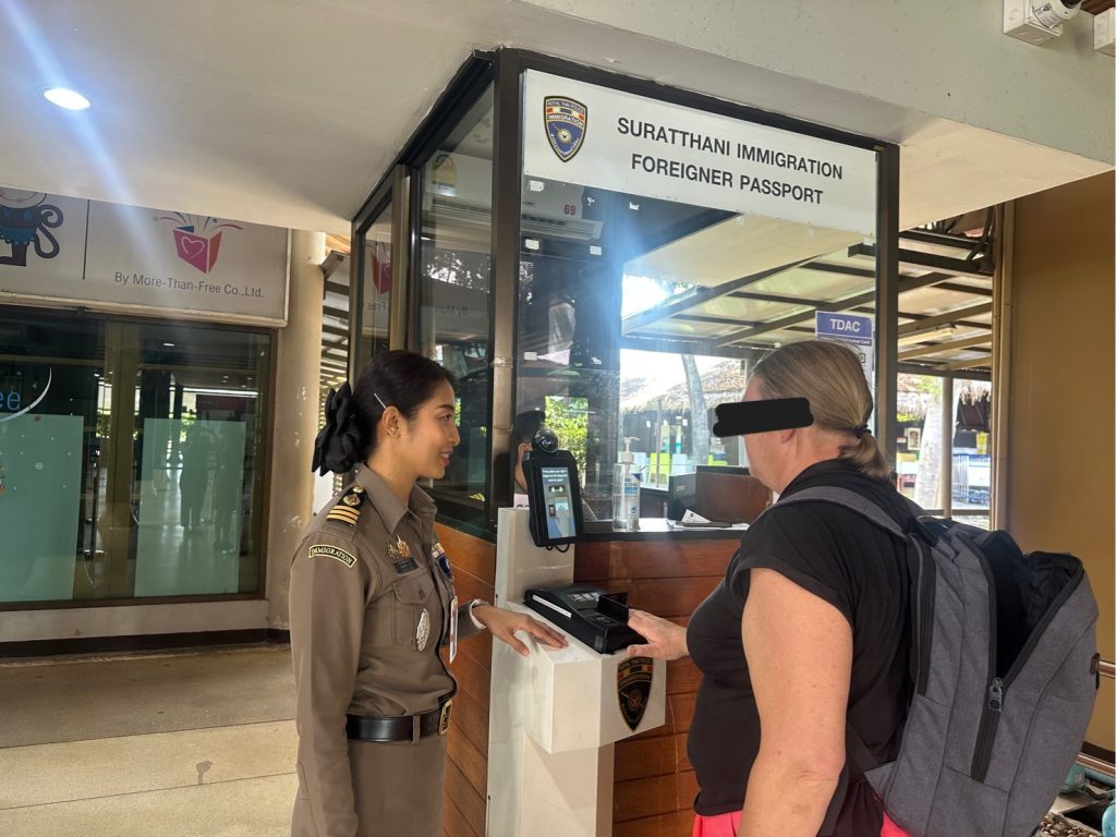 วันที่ 21 พ.ค.68 ร.ต.อ.ธฤติพัฒน์ สมมะลวน รอง สว.ตม.จว.สุราษฎร์ธานี ,ร.ต.อ.หญิง ภาวดี หวานทอง ,ร.ต.อ.หญิง จันทร์จิรา วิถี พร้อมด้วยเจ้าหน้าที่ ตม.จว.สุราษฎร์ธานี (ทอ.สมุย) ปฏิบัติหน้าที่ตรวจบุคคลและพาหนะทางอากาศ, Overstay, Visa on arrival พร้อมดูแล ช่วยเหลือ อำนวยความสะดวกและความเรียบร้อยในแถวระหว่างรอเข้าใช้บริการให้กับผู้โดยสารที่เดินทางเข้า-ออก ทางอากาศในเขตพื้นที่รับผิดชอบประจำสนามบินสมุย อ.เกาะสมุย จว.สุราษฎร์ธานี