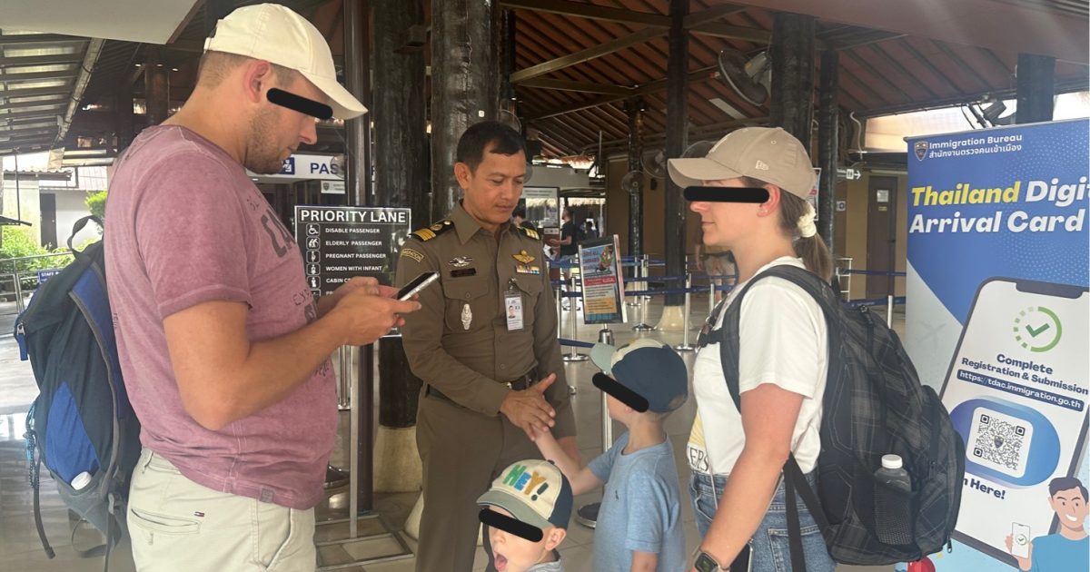 วันที่ 21 พ.ค.68 ร.ต.อ.ธฤติพัฒน์ สมมะลวน รอง สว.ตม.จว.สุราษฎร์ธานี ,ร.ต.อ.หญิง ภาวดี หวานทอง ,ร.ต.อ.หญิง จันทร์จิรา วิถี พร้อมด้วยเจ้าหน้าที่ ตม.จว.สุราษฎร์ธานี (ทอ.สมุย) ปฏิบัติหน้าที่ตรวจบุคคลและพาหนะทางอากาศ, Overstay, Visa on arrival พร้อมดูแล ช่วยเหลือ อำนวยความสะดวกและความเรียบร้อยในแถวระหว่างรอเข้าใช้บริการให้กับผู้โดยสารที่เดินทางเข้า-ออก ทางอากาศในเขตพื้นที่รับผิดชอบประจำสนามบินสมุย อ.เกาะสมุย จว.สุราษฎร์ธานี