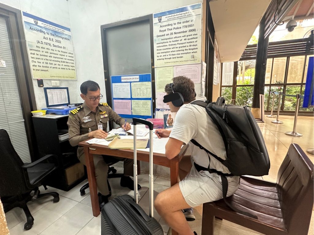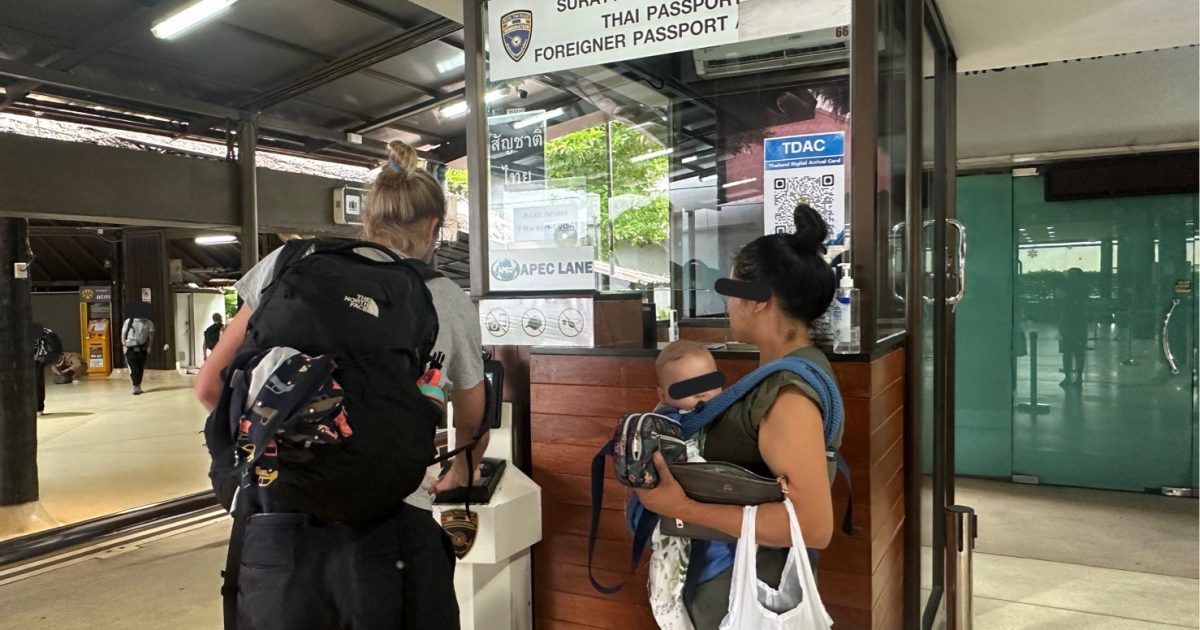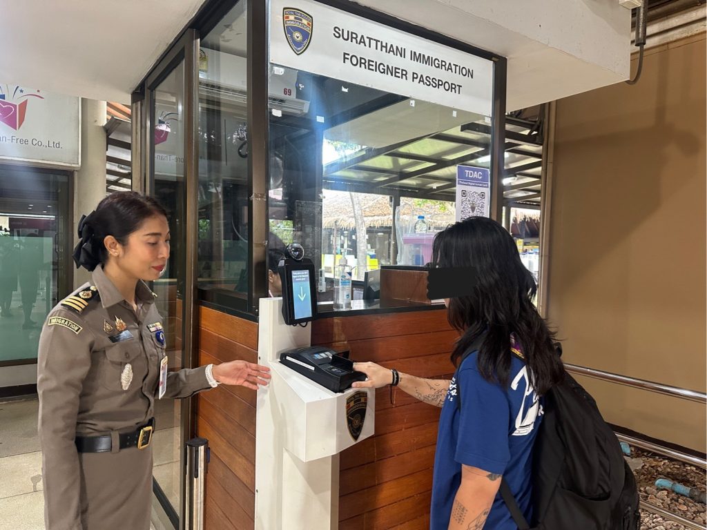 วันที่ 22 พ.ค.68 ร.ต.อ.ธฤติพัฒน์ สมมะลวน รอง สว.ตม.จว.สุราษฎร์ธานี ,ร.ต.อ.หญิง ภาวดี หวานทอง ,ร.ต.อ.หญิง จันทร์จิรา วิถี พร้อมด้วยเจ้าหน้าที่ ตม.จว.สุราษฎร์ธานี (ทอ.สมุย) ปฏิบัติหน้าที่ตรวจบุคคลและพาหนะทางอากาศ, Overstay, Visa on arrival พร้อมดูแล ช่วยเหลือ อำนวยความสะดวกและความเรียบร้อยในแถวระหว่างรอเข้าใช้บริการให้กับผู้โดยสารที่เดินทางเข้า-ออก ทางอากาศในเขตพื้นที่รับผิดชอบประจำสนามบินสมุย อ.เกาะสมุย จว.สุราษฎร์ธานี