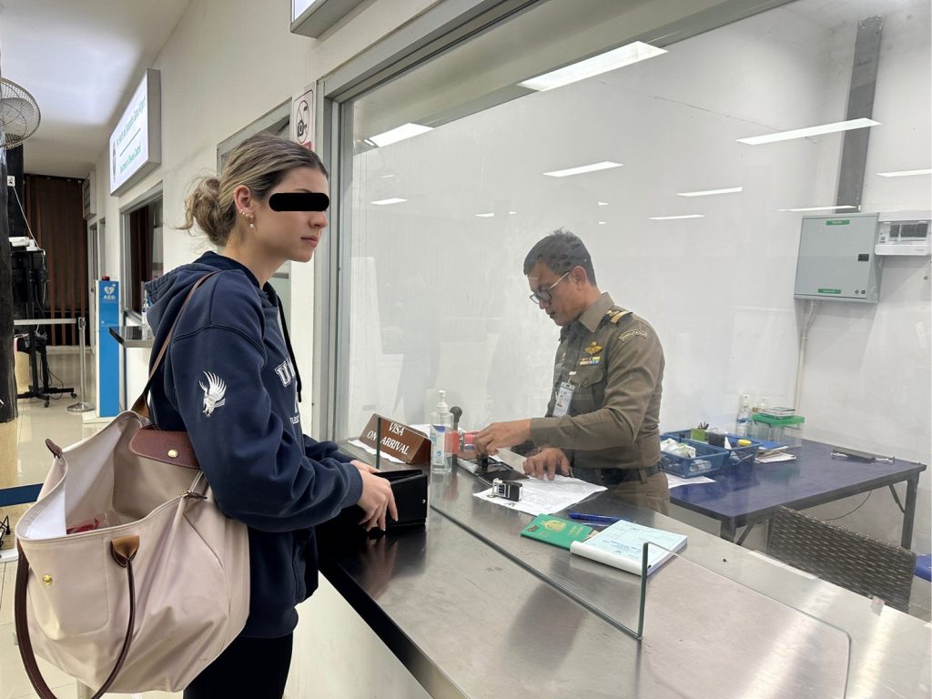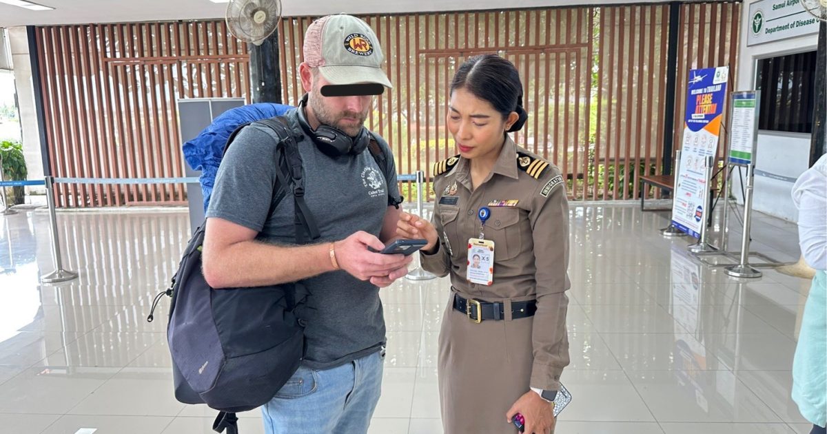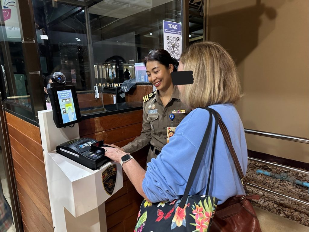 วันที่ 25 พ.ค.68 ร.ต.อ.ธฤติพัฒน์ สมมะลวน รอง สว.ตม.จว.สุราษฎร์ธานี ,ร.ต.อ.หญิง ภาวดี หวานทอง ,ร.ต.อ.หญิง จันทร์จิรา วิถี พร้อมด้วยเจ้าหน้าที่ ตม.จว.สุราษฎร์ธานี (ทอ.สมุย) ปฏิบัติหน้าที่ตรวจบุคคลและพาหนะทางอากาศ, Overstay, Visa on arrival พร้อมดูแล ช่วยเหลือ อำนวยความสะดวกและความเรียบร้อยในแถวระหว่างรอเข้าใช้บริการให้กับผู้โดยสารที่เดินทางเข้า-ออก ทางอากาศในเขตพื้นที่รับผิดชอบประจำสนามบินสมุย อ.เกาะสมุย จว.สุราษฎร์ธานี