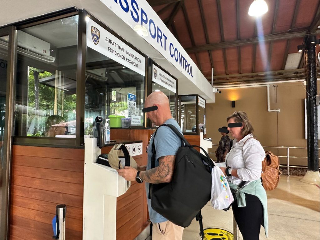 ตม.จว.สุราษฎร์ธานี (ทอ.สมุย) ปฏิบัติหน้าที่ตรวจบุคคลและพาหนะทางอากาศ