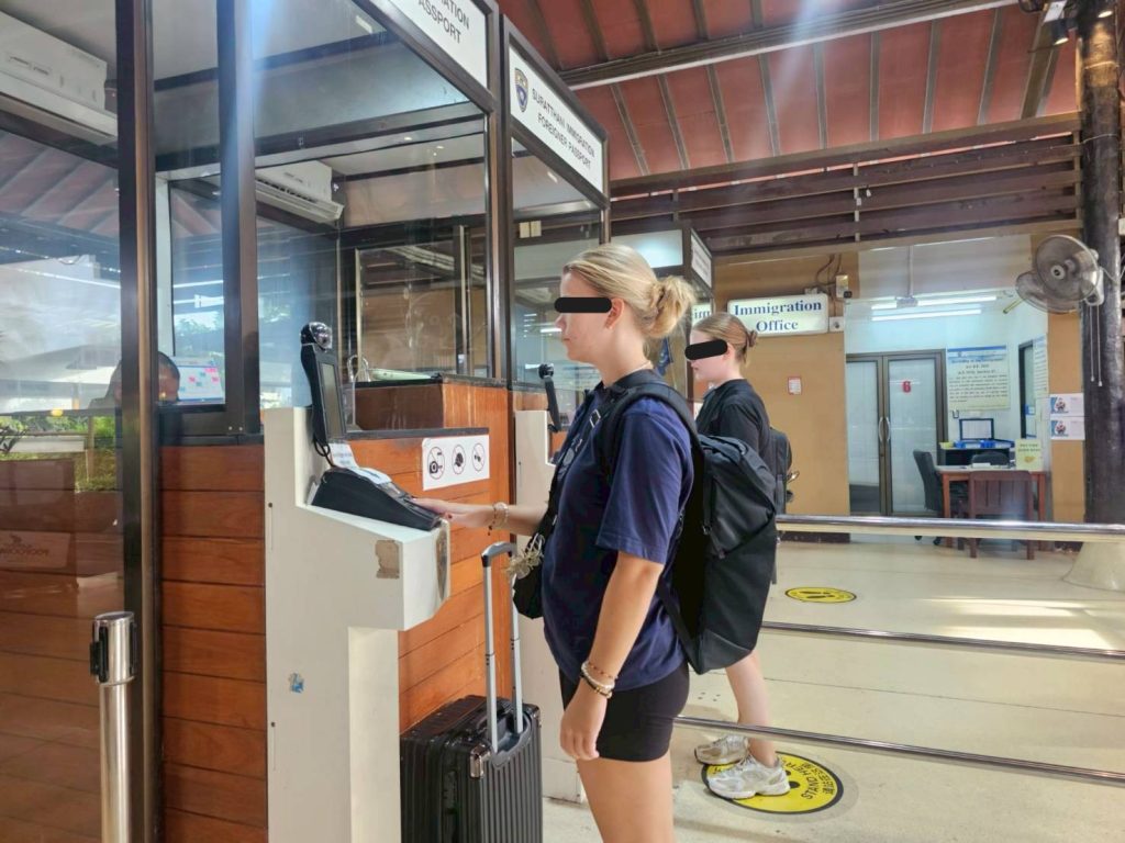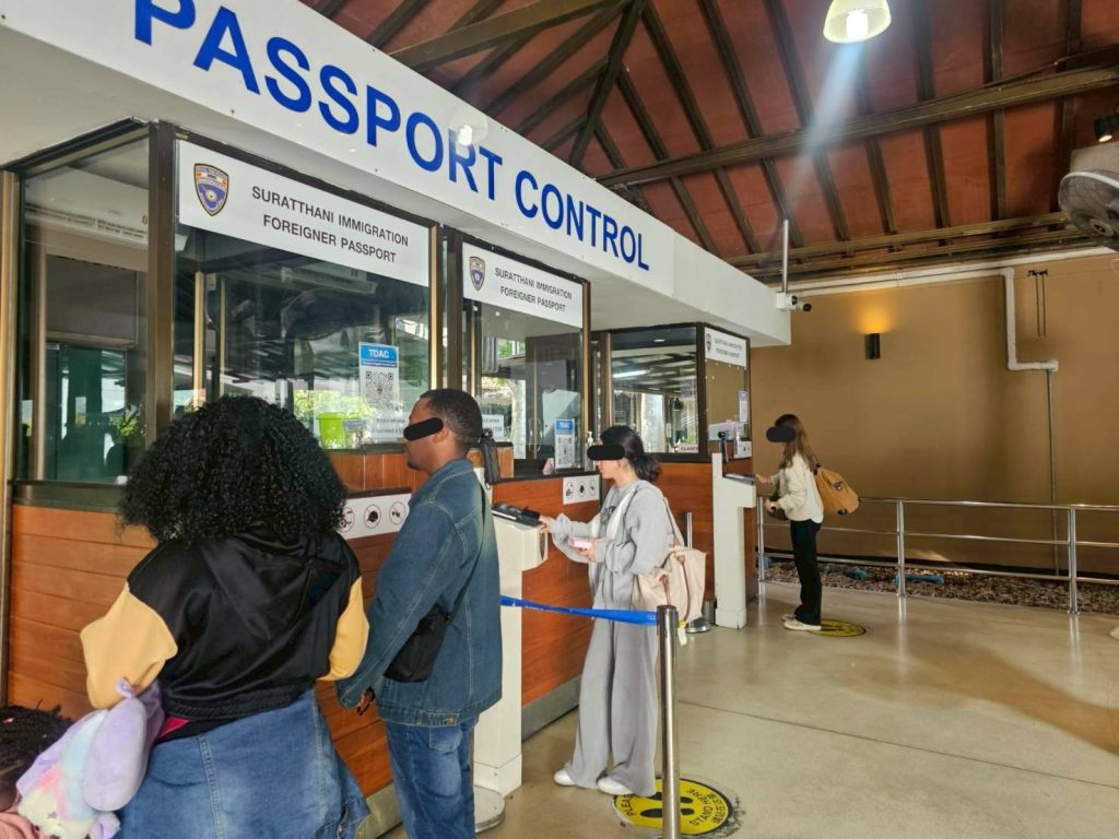 วันที่ 28 พ.ค.68 ร.ต.อ.หญิง ภาวดี หวานทอง ,ร.ต.อ.ธฤติพัฒน์ สมมะลวน, ร.ต.อ.หญิง จันทร์จิรา วิถี รอง สว.ตม.จว.สุราษฎร์ธานี พร้อมด้วยเจ้าหน้าที่ ตม.จว.สุราษฎร์ธานี (ทอ.สมุย) ปฏิบัติหน้าที่ตรวจบุคคลและพาหนะทางอากาศ, Overstay, Visa on arrival พร้อมดูแล ช่วยเหลือ อำนวยความสะดวกและความเรียบร้อยในแถวระหว่างรอเข้าใช้บริการให้กับผู้โดยสารที่เดินทางเข้า-ออก ทางอากาศในเขตพื้นที่รับผิดชอบประจำสนามบินสมุย อ.เกาะสมุย จว.สุราษฎร์ธานี