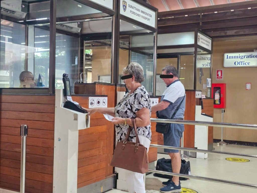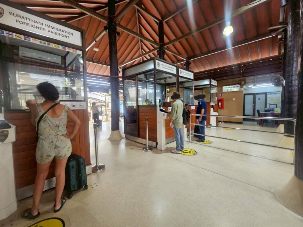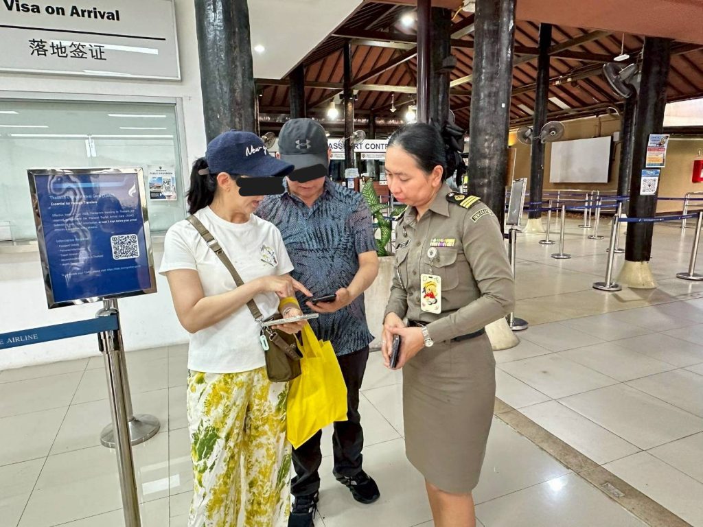 วันที่ 29 พ.ค.68 ร.ต.อ.หญิง ภาวดี หวานทอง ,ร.ต.อ.ธฤติพัฒน์ สมมะลวน, ร.ต.อ.หญิง จันทร์จิรา วิถี รอง สว.ตม.จว.สุราษฎร์ธานี พร้อมด้วยเจ้าหน้าที่ ตม.จว.สุราษฎร์ธานี (ทอ.สมุย) ปฏิบัติหน้าที่ตรวจบุคคลและพาหนะทางอากาศ, Overstay, Visa on arrival พร้อมดูแล ช่วยเหลือ อำนวยความสะดวกและความเรียบร้อยในแถวระหว่างรอเข้าใช้บริการให้กับผู้โดยสารที่เดินทางเข้า-ออก ทางอากาศในเขตพื้นที่รับผิดชอบประจำสนามบินสมุย อ.เกาะสมุย จว.สุราษฎร์ธานี