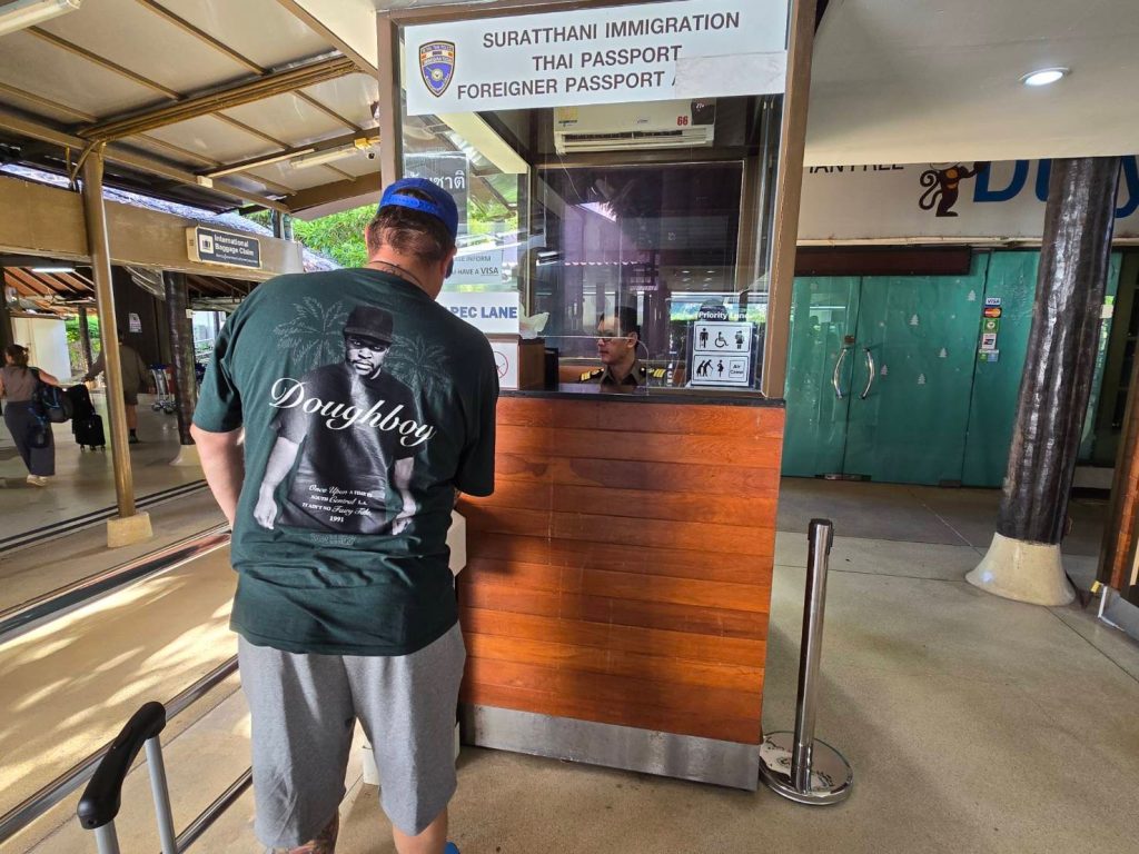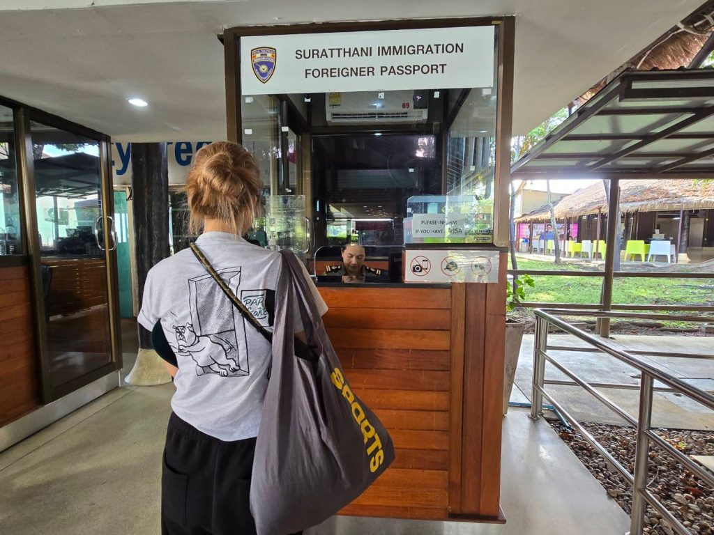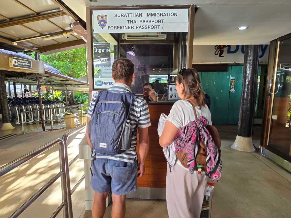 วันนี้ 28 เม.ย.2568 เวลา 08.00 น. ภายใต้การอำนวยการและสั่งการของ พล.ต.ต.ทรงโปรด สิริสุขะ ผบก.ตม.6, พ.ต.อ.นฤวัต พุทธวิโร ผกก.ตม.จว.สุราษฎร์ธานี, พ.ต.ท.สภา จิตต์หลัง รอง ผกก.ฯ ปฏิบัติราชการ ตม.จว.สุราษฎร์ธานี, ว่าที่ พ.ต.ท.หญิง ปาณิศา มุขรัษฎา สว.ตม.จว.สุราษฎร์ธานี นำโดย ร.ต.อ.ธฤติพัฒน์ สมมะลวน รอง สว.ตม.จว.สุราษฎร์ธานี พร้อมด้วยเจ้าหน้าที่ ตม.จว.สุราษฎร์ธานี (ทอ.สมุย) ปฏิบัติหน้าที่ตรวจบุคคลและพาหนะทางอากาศให้กับผู้โดยสารที่เดินทางเข้า เที่ยวบิน TR640 ในเขตพื้นที่รับผิดชอบประจำสนามบินสมุย