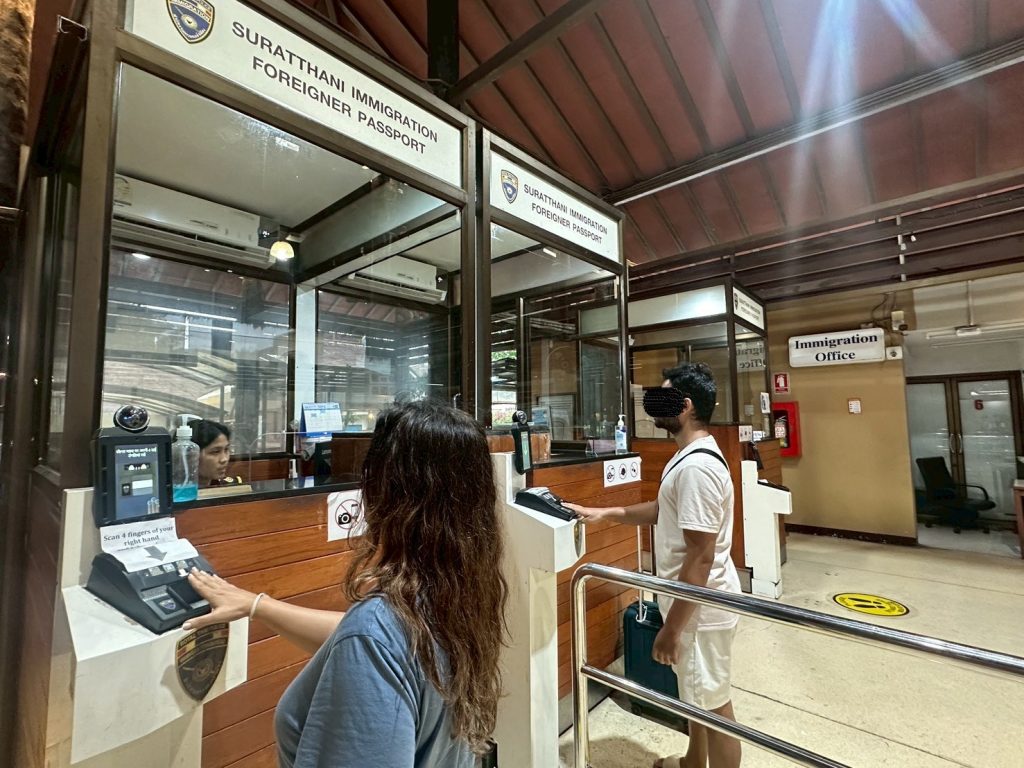 วันที่ 23 มิ.ย.68 ร.ต.อ.ธฤติพัฒน์ สมมะลวน รอง สว.ตม.จว.สุราษฎร์ธานี ,ร.ต.อ.หญิง ภาวดี หวานทอง ,ร.ต.อ.หญิง จันทร์จิรา วิถี พร้อมด้วยเจ้าหน้าที่ ตม.จว.สุราษฎร์ธานี (ทอ.สมุย) ปฏิบัติหน้าที่ตรวจบุคคลและพาหนะทางอากาศ, Overstay, Visa on arrival พร้อมดูแล ช่วยเหลือ อำนวยความสะดวกและความเรียบร้อยในแถวระหว่างรอเข้าใช้บริการให้กับผู้โดยสารที่เดินทางเข้า-ออก ทางอากาศในเขตพื้นที่รับผิดชอบประจำสนามบินสมุย อ.เกาะสมุย จว.สุราษฎร์ธานี