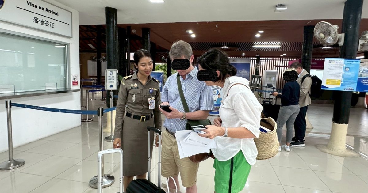 วันที่ 23 มิ.ย.68 ร.ต.อ.ธฤติพัฒน์ สมมะลวน รอง สว.ตม.จว.สุราษฎร์ธานี ,ร.ต.อ.หญิง ภาวดี หวานทอง ,ร.ต.อ.หญิง จันทร์จิรา วิถี พร้อมด้วยเจ้าหน้าที่ ตม.จว.สุราษฎร์ธานี (ทอ.สมุย) ปฏิบัติหน้าที่ตรวจบุคคลและพาหนะทางอากาศ, Overstay, Visa on arrival พร้อมดูแล ช่วยเหลือ อำนวยความสะดวกและความเรียบร้อยในแถวระหว่างรอเข้าใช้บริการให้กับผู้โดยสารที่เดินทางเข้า-ออก ทางอากาศในเขตพื้นที่รับผิดชอบประจำสนามบินสมุย อ.เกาะสมุย จว.สุราษฎร์ธานี