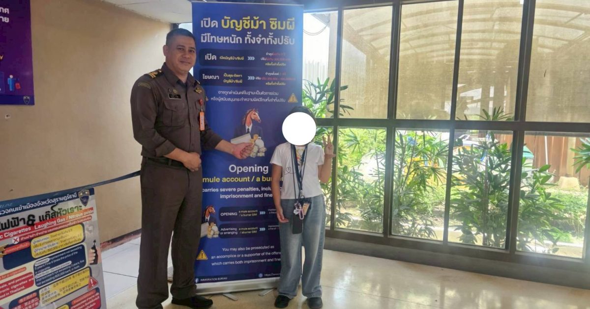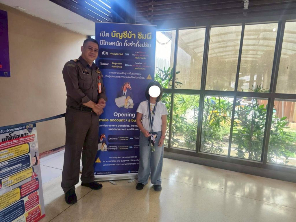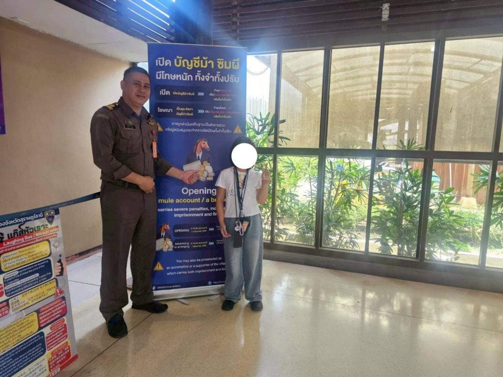 วันที่ 9/3/2569 ร.ต.อ.หญิง ภาวดี หวานทอง รอง สว.ตม.จว.สุราษฎร์ธานี พร้อมด้วยเจ้าหน้าที่ ตม.จว.สุราษฎร์ธานี (ทอ.สมุย) ประชาสัมพันธ์ให้ผู้โดยสารคนไทยและต่างชาติ จำนวน 1 คน ได้รับทราบถึงโทษทางกฎหมายที่เกี่ยวข้องกับ สแกมเมอร์ ซิมผี/บัญชีม้า ในเขตพื้นที่รับผิดชอบประจำสนามบินสมุย