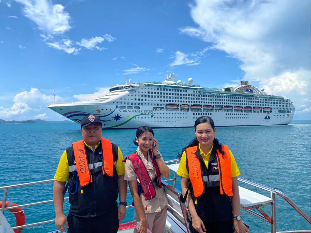 ร.ต.อ.หญิง มนธีรา สนเลม็ด รอง สว.ตม.จว.สุราษฎร์ธานี และ ส.ต.อ.อิมรอน คลานุรักษ์ ผบ.หมู่ ตม.จว.สุราษฎร์ธานี ให้มาปฏิบัติหน้าที่ตรวจเรือสำราญ “m.v. STAR VOYAGER” ที่เดินทางมาจากแหลมฉบัง จว.ชลบุรี เพื่อนำนักท่องเที่ยวมาพักผ่อนในพื้นที่เกาะสมุย ณ ท่าเทียบเรือลมพระยาหน้าทอน ต.อ่างทอง อ.เกาะสมุย และเดินทางไปยังประเทศสิงคโปร์ ตั้งแต่เวลา 10.00 – 17.00 น.
