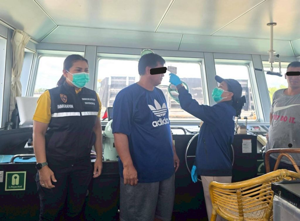 วันที่ 8 พ.ค.68 ร.ต.อ.หญิง ธมนวรรณ มณี รอง สว.ตม.จว.สุราษฎร์ธานี ,ด.ต.หญิง พิมประภา จันทร์ขาว ผบ.หมู่ ตม.จว.สุราษฎร์ธานี ปฏิบัติหน้าที่ตรวจบุคคลและพาหนะทางน้ำ ในเขตพื้นที่รับผิดชอบ ประจำท่าเรืออ่าวบ้านดอน อ.เมือง จว.สุราษฎร์ธานี