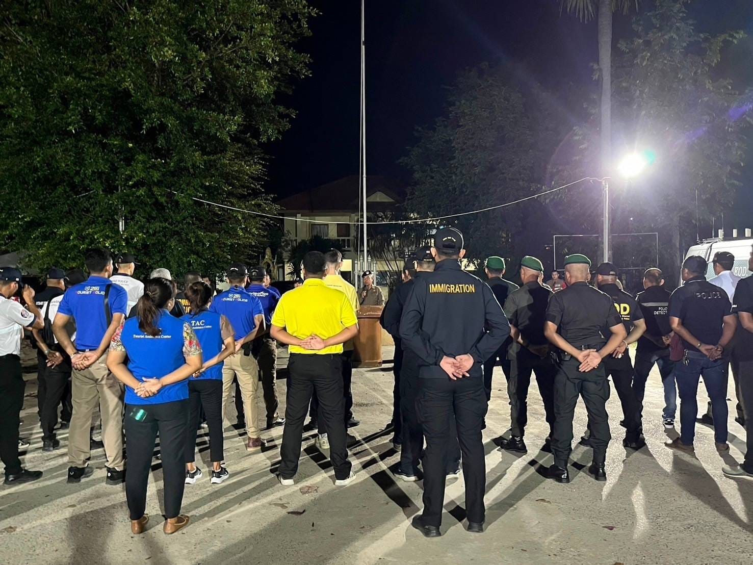วันที่ 25 ก.พ.67 เวลา 20.00 น. ภายใต้การอำนวยการและสั่งการของ พล.ต.ต.ทรงโปรด สิริสุขะ ผบก.ตม.6 ,พ.ต.อ.กันตวัฒน์ พงษ์สถาบดี รอง ผบก.ตม.6, ว่าที่ พ.ต.อ.นฤวัต พุทธวิโร ผกก.ตม.จว.สุราษฎร์ธานี ,พ.ต.ท.วัสส์ธนภูมิ กุลจิตติชุติพร รอง ผกก.ตม.จว.สุราษฎร์ธานี นำโดย พ.ต.ท.หญิง สงวนทรัพย์ ลาภสนอง สว.ตม.จว.สุราษฎร์ธานี พร้อมด้วยเจ้าหน้าที่ชุดสืบสวน ชป.4(พะงัน) ได้นำ อส.ตม. จำนวน 2 นาย คือ MR.CID ,THEO,JACQUES CLAUDE สัญชาติฝรั่งเศส และ MR.JOVANI ISRAEL สัญชาติอิสราเอล ร่วมกับ เจ้าหน้าที่ตำรวจภูธร สภ.เกาะพะงัน, เจ้าหน้าที่ตำรวจท่องเที่ยว ส.ทท.5 บก.ทท.3, เจ้าหน้าที่ตำรวจน้ำ, เจ้าหน้าที่ฝ่ายปกครองอำเภอเกาะพะงัน, เจ้าหน้าที่กรมเจ้าท่า, เจ้าหน้าที่เทศบาลตำบลหาดริ้น และสาธารณสุขอำเภอ ร่วมปล่อยแถวชุดปฎิบัติการจัดระเบียบและดูแลความปลอดภัยแก่นักท่องเที่ยว เทศกาลฟูลมูนประจำเดือนกุมภาพันธ์ 2567 บริเวณชายหาดหาดริ้น ณ ลานเอนกประสงค์ หน่วยบริการประชาชนบ้านใต้ ม.6 ต.บ้านใต้ อ.เกาะพะงัน จ.สุราษฎร์ธานี