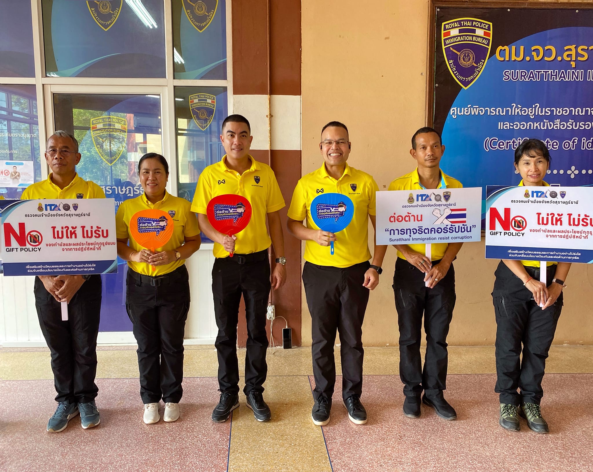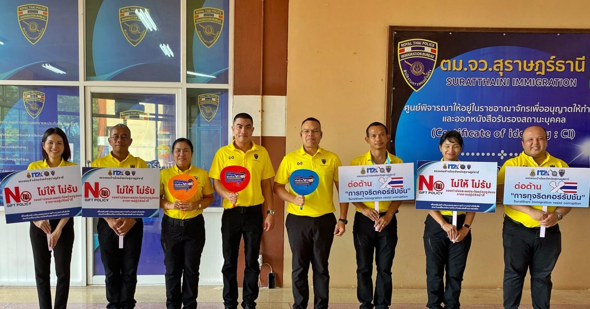 วันที่ 12 มี.ค.67 ว่าที่ พ.ต.อ.นฤวัต พุทธวิโร ผกก.ตม.จว.สุราษฎร์ธานี พร้อมด้วยข้าราชการตำรวจในสังกัด ร่วมรณรงค์ต่อต้านการทุจริตคอร์รัปชัน ตามนโยบายต่อต้านการรับสินบนในทุกกรณี (Anti-Bribery Policy) ไม่รับของขวัญและของกำนัลทุกชนิดจากการปฏิบัติหน้าที่ ทั้งในขณะ ก่อน และหลังปฎิบัติหน้าที่ (NO GIFT POLICY) พร้อมทั้งประชาสัมพันธ์ช่องทางการแจ้งเบาะแส ช่องทางการร้องเรียน หากพบเห็นหรือสงสัยการปฏิบัติหน้าที่ของเจ้าหน้าที่ ตม.จว.สุราษฎร์ธานี สามารถแจ้งข้อร้องเรียนผ่านช่องทางต่างๆ ได้ตลอด 24 ชั่วโมง ณ ศูนย์บริหารจัดการการทำงานของแรงงานเมียนมาแบบเบ็ดเสร็จตามมติคณะรัฐมนตรีเมื่อวันที่ 3 ตุลาคม 2566 ต.มะลวน อ.พุนพิน จว.สุราษฎร์ธานี