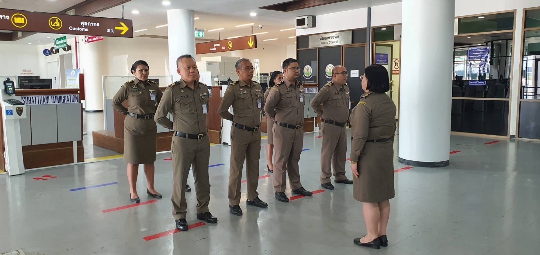 วันที่ 10 ก.พ.67 เวลา 15.30 น. ว่าที่ พ.ต.อ.นฤวัต พุทธวิโร ผกก.ตม.จว.สุราษฎร์ธานี มอบหมายให้ ร.ต.อ.หญิง ธมนวรรณ มณี รอง สว.ตม.จว.สุราษฎร์ธานี พร้อมด้วยเจ้าหน้าที่งานตรวจบุคคลและพาหนะ ร่วมต้อนรับและทำการตรวจบุคคลและพาหนะ เที่ยวบินปฐมฤกษ์ขาเข้า ไฟร์ท SL 7363 (ไทเป – สุราษฎร์ธานี) โดยมีผู้อำนวยการสนามบินสุราษฎร์ธานี และหน่วยงานต่าง ๆ ร่วมต้อนรับ ณ ท่าอากาศยานนานาชาติสุราษฎร์ธานี