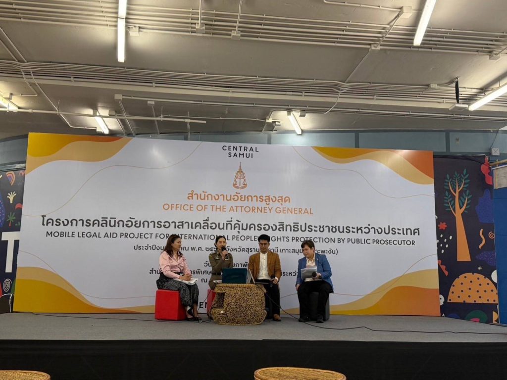 วันที่ 25 ก.พ.68 เวลา 8.30 น.-16.30 น. ว่าที่ พ.ต.ท.หญิง ปาณิศา มุขรัษฎา สว.ตม.จว.สุราษฎร์ธานี เข้าร่วมเป็นวิทยากร ร่วมเสวนาให้ความรู้ “คนต่างชาติน่ารัก เมืองไทยน่าอยู่ กฎหมายน่ารู้” ในประเด็นที่เกี่ยวกับการตรวจลงตราและการขออยู่ต่อในราชอาณาจักรไทยของคนต่างชาติ โครงการคลินิกอัยการอาสาเคลื่อนที่คุ้มครองสิทธิประชาชนระหว่างประเทศ สำนักงานอัยการพิเศษฝ่ายคุ้มครองสิทธิประชาชนระหว่างประเทศ สำนักงานคุ้มครองสิทธิและช่วยเหลือทางกฎหมายแก่ประชาชน สำนักงานอัยการสูงสุด ณ ศูนย์การค้าเซ็นทรัลสมุย อ.เกาะสมุย จว.สุราษฎร์ธานี