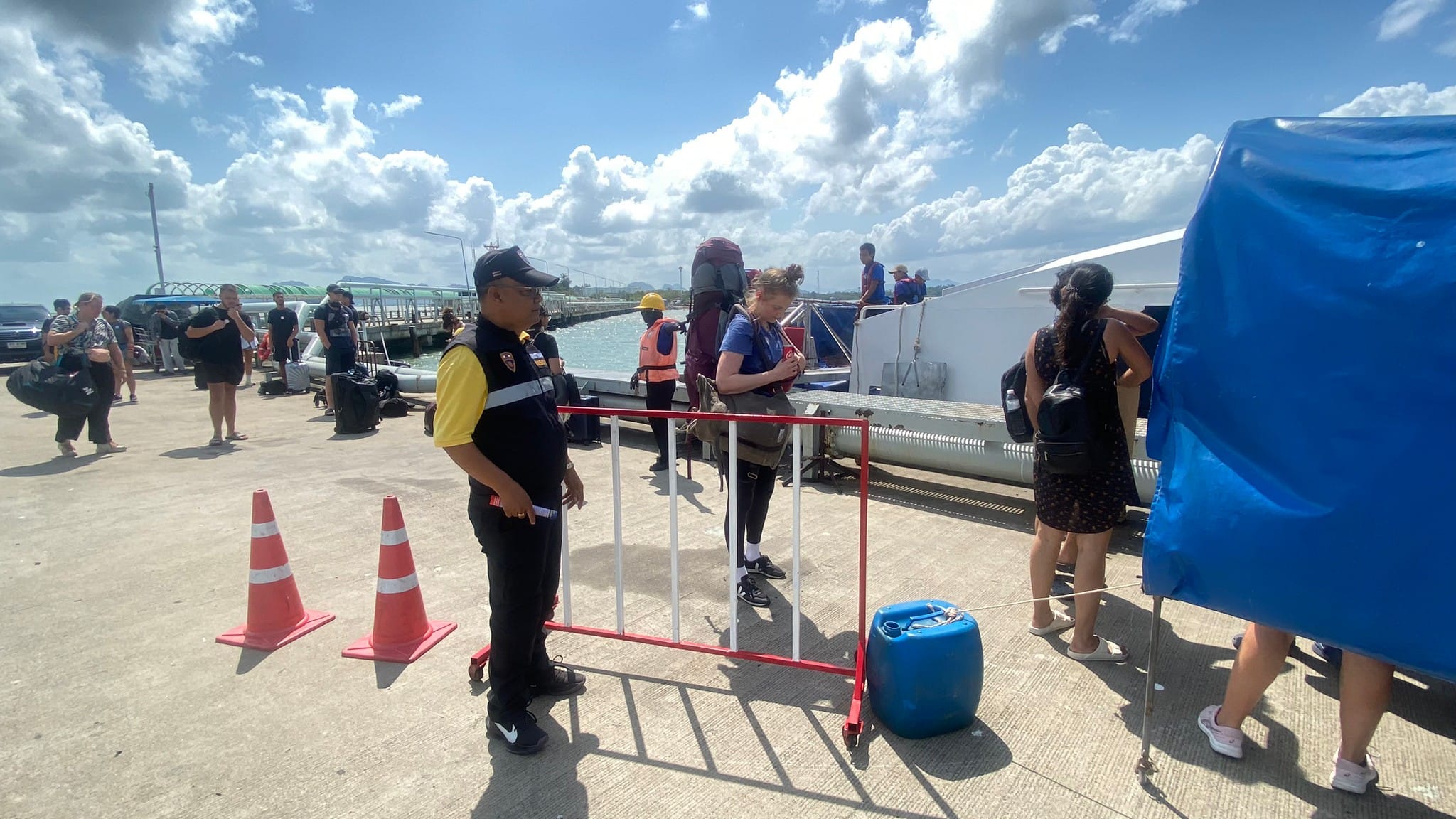 วันที่ 28 ก.พ 2567 ร.ต.ท. พิทัก ฤทธิรักษา รอง สว. (สส.) ตม.จว.สุราษฎร์ธานี ใช้รถยนต์ตรวจการณ์ไฟฟ้าอัจฉริยะ (SMART PATROL CAR:SPC) ออกดูแลความปลอดภัยและอำนวยความสะดวก แก่นักท่องเที่ยวในพื้นที่รับผิดชอบ บริเวณท่าเรือลมพระยา ต. ดอนสัก อ. ดอนสัก จ.สุราษฎร์ธานี