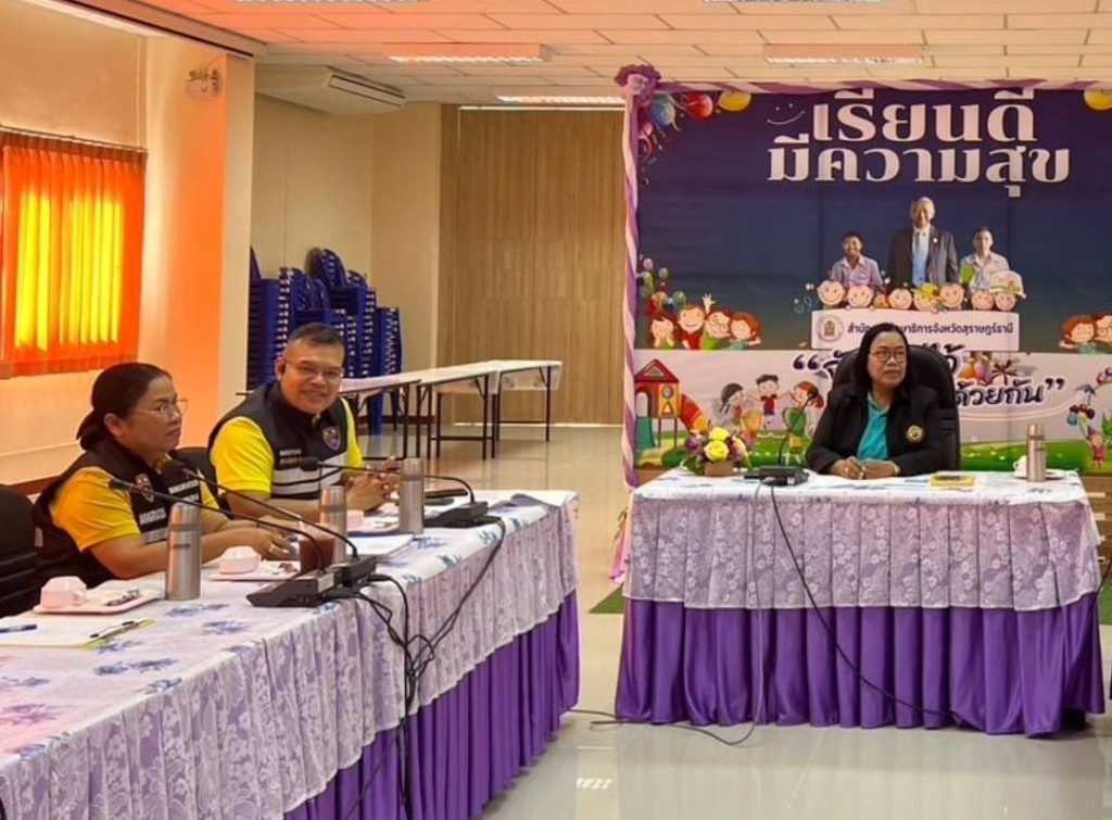 วันที่ 5 มี.ค.68 เวลา 09.00 น. พ.ต.ท.พิงคะรัตน์ ซ้ายขวัญ รอง ผกก.ตม.จว.สุราษฎร์ธานี พร้อมด้วย พ.ต.ท.หญิง ปิยะวรรณ ไกรแก้วสว.ตม.จว.สุราษฎร์ธานี เข้าร่วมประชุมเพื่อหารือ แนวทางการดำเนินการรับบุคคลต่างด้าวที่ทำงานในสถานประกอบการที่จัดการศึกษาโดยไม่ได้รับอนุญาต ครั้งที่ 1/2568 ณ ห้องชุมพล ชั้น 3 สำนักงานศึกษาธิการจังหวัดสุราษฎร์ธานี อำเภอเมืองสุราษฎร์ธานี จังหวัดสุราษฎร์ธานี