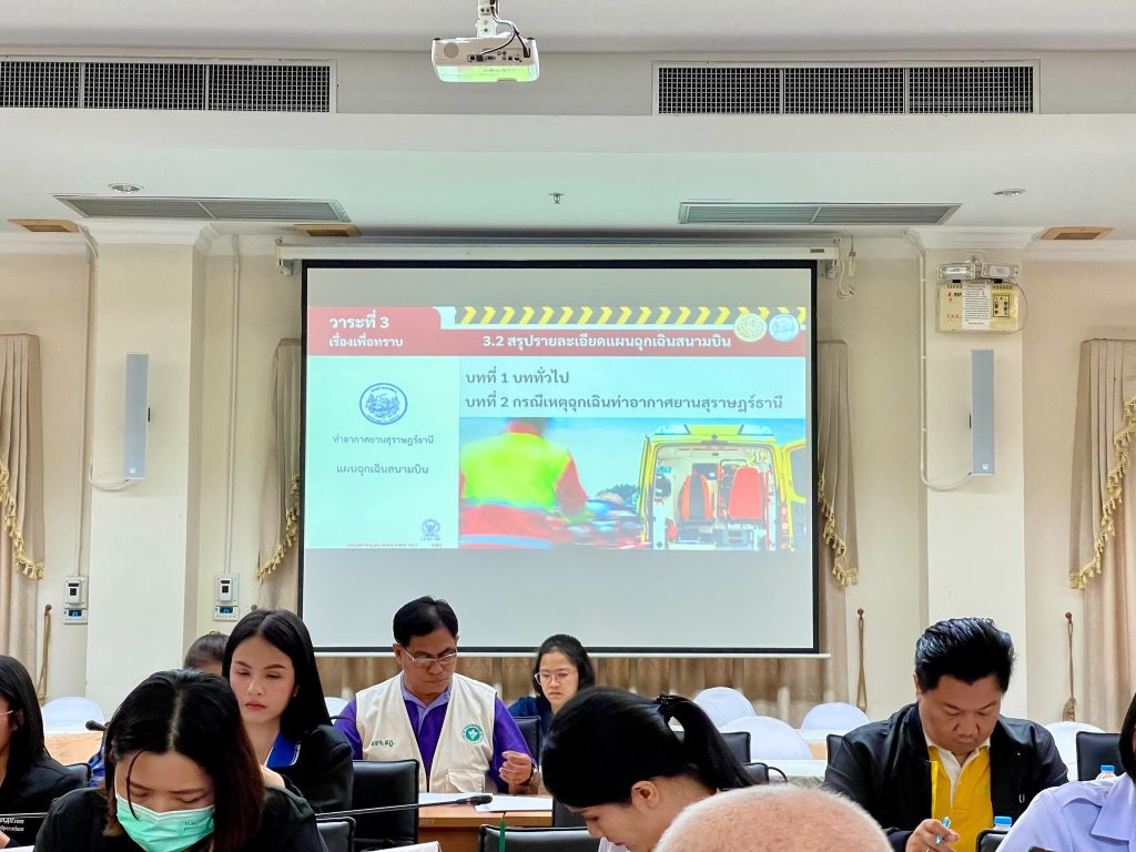 เข้าร่วมประชุมคณะกรรมการและคณะทำงานการฝึกซ้อมแผนฉุกเฉินท่าอากาศยานสุราษฎร์ธานีเต็มรูปแบบ (Full-scale Exercise) ประจำปีงบประมาณ พ.ศ.2568 กรณีอากาศยานประสบอุบัติเหตุในบริเวณท่าอากาศยาน (นอกเขตพื้นที่การบิน) ครั้งที่ 2/2568