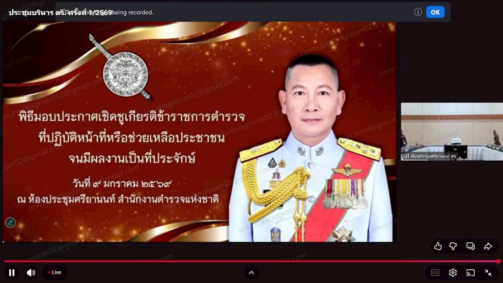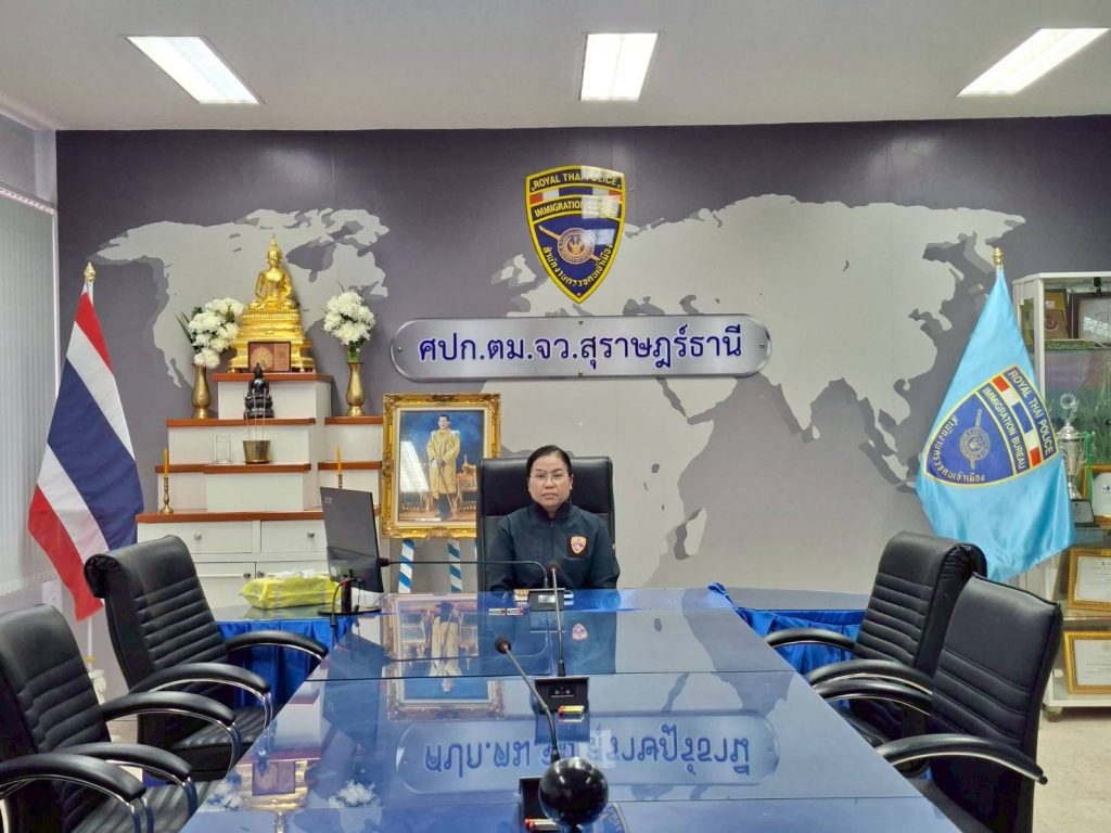 วันที่ 9 ม.ค.69 เวลา 13.30 น. พ.ต.อ.นฤวัต พุทธวิโร ผกก.ตม.จว.สุราษฎร์ธานี มอบหมายให้ พ.ต.ท หญิง ปิยะวรรณ ไกรแก้ว สว.ตม.จว.สุราษฎร์ธานี เข้าร่วมเฝ้าฟังการประชุมบริหาร ตร.ครั้งที่ 1/2569 ผ่านสื่ออิเล็กทรอนิกส์ ณ ที่ตั้ง (Zoom Meeting) โดยมี พล.ต.อ.กิตติ์รัฐ พันธุ์เพ็ชร์ ผบ.ตร. เป็นประธาน