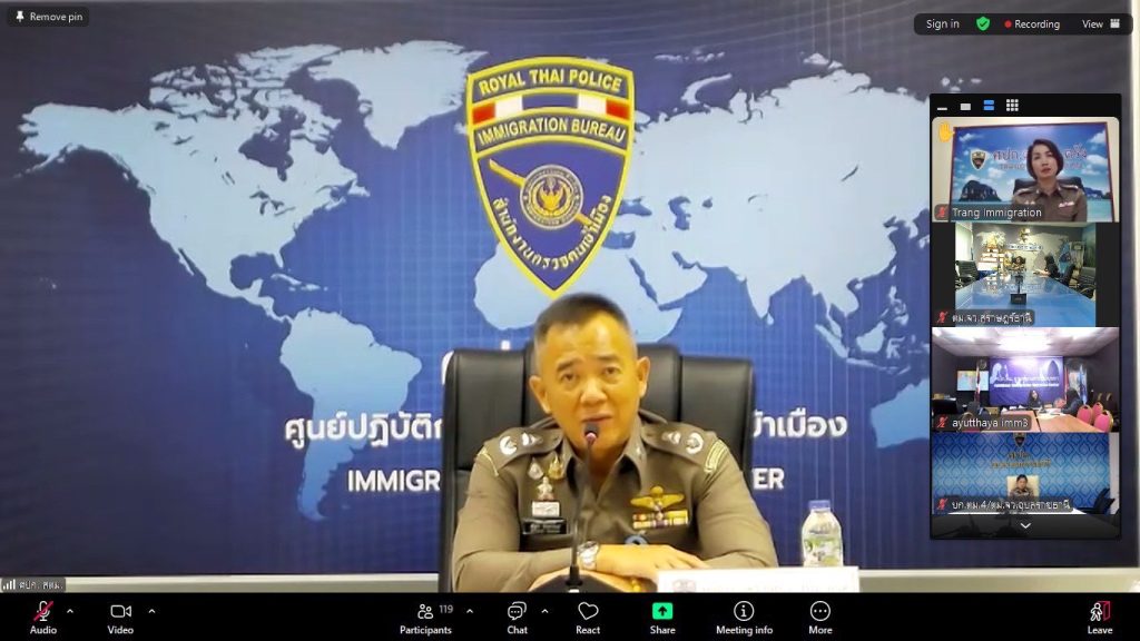 ณ ห้องประชุม ศปก.ตม.จว.สุราษฎร์ธานี และผ่านระบบการประชุมทางไกลผ่านจอภาพ ระบบ Zoom