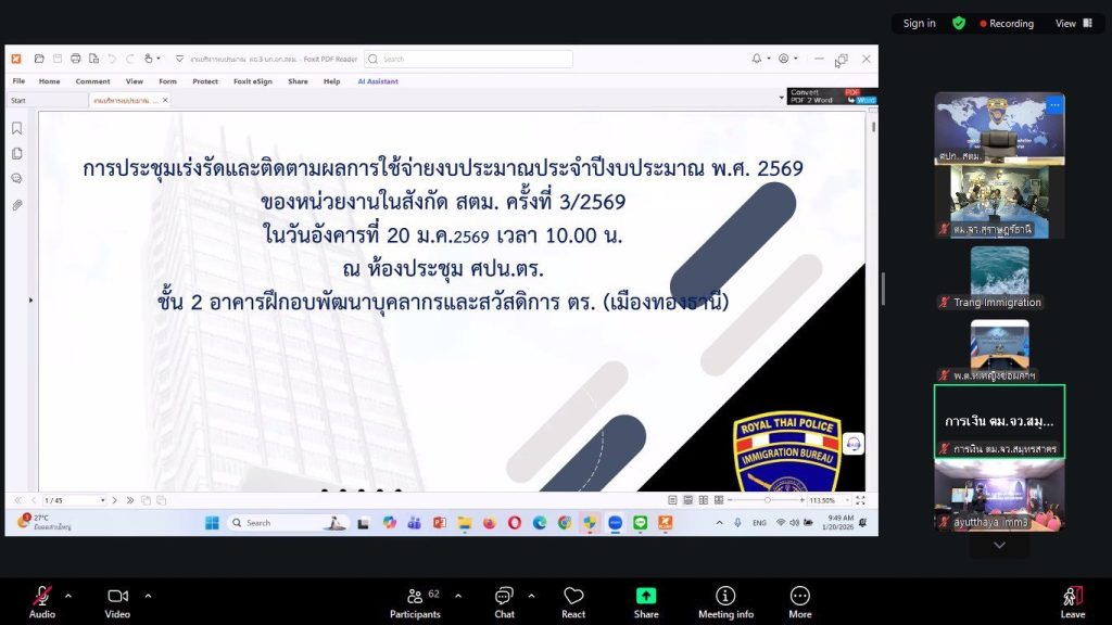 เข้าร่วมการประชุมเร่งรัดและติดตามผลการใช้จ่ายงบประมาณประจำปีงบประมาณ พ.ศ.2569 ของหน่วยงานในสังกัด สตม. ครั้งที่ 3/2569