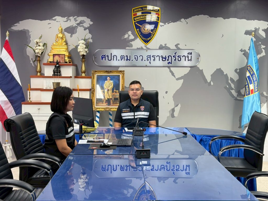 พ.ต.ท.พิงคะรัตน์ ซ้ายขวัญ รอง ผกก.ตม.จว.สุราษฎร์ธานี และ ร.ต.อ.หญิง อลิตสรา วงษ์แก้ว รอง สว.ตม.จว.สุราษฎร์ธานี