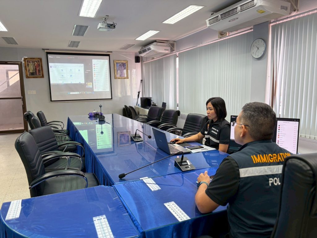 ณ ห้องประชุม ศปก.ตม.จว.สุราษฎร์ธานี และผ่านระบบการประชุมทางไกลผ่านจอภาพ ระบบ Zoom