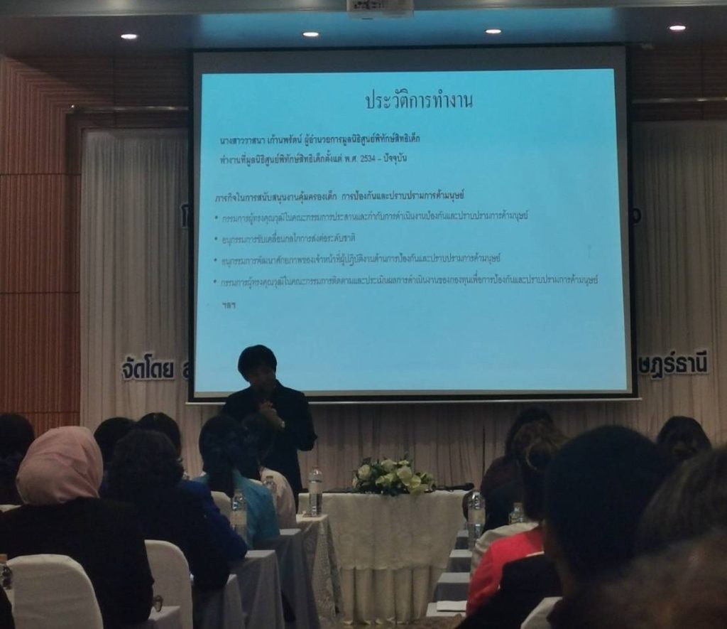 รอง สว.(สส.) ตม.จว.สุราษฎร์ธานี เป็นผู้แทนเข้าร่วมประชุมโครงการพัฒนาศักยภาพเครือข่ายเพื่อสร้างความรู้ความเข้าใจและความตระหนักถึงปัญหาการค้ามนุษย์