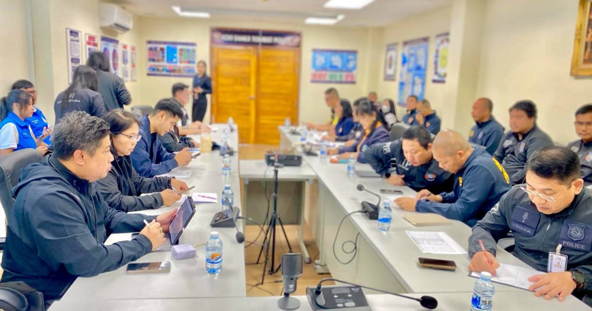 ประชุมร่วมกับเจ้าหน้าที่สำนักงานทะเบียนธุรกิจนำเที่ยวและมัคคุเทศก์ สาขาภาคใต้ เขต 1 กรมการท่องเที่ยว, เจ้าหน้าที่กรมธุรกิจการค้า กระทรวงพาณิชย์, เจ้าหน้าที่สำนักงานการท่องเที่ยวและกีฬาจังหวัดสุราษฎร์ธานี, เจ้าหน้าที่กรมสอบสวนคดีพิเศษ, เจ้าหน้าที่ตำรวจท่องเที่ยว ส.ทท.5 กก.2 บก.ทท.3